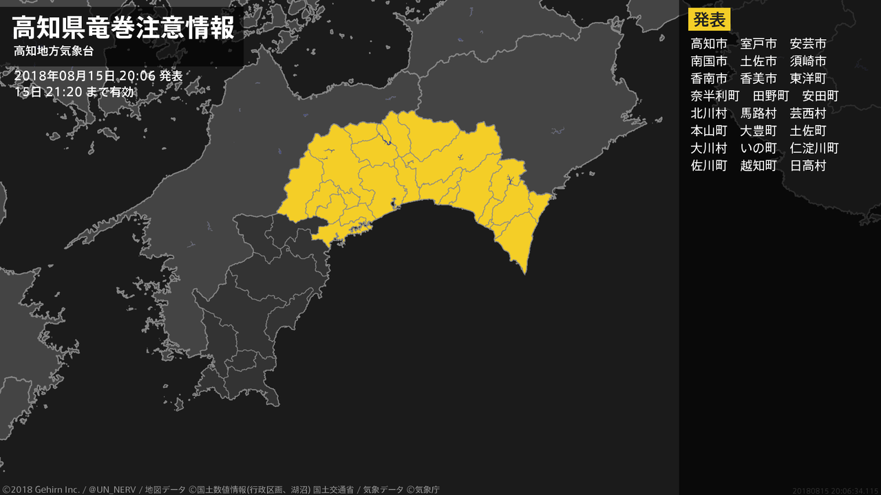 【大雨と雷及び突風に関する全般気象情報 2018年08月15日 16:39】