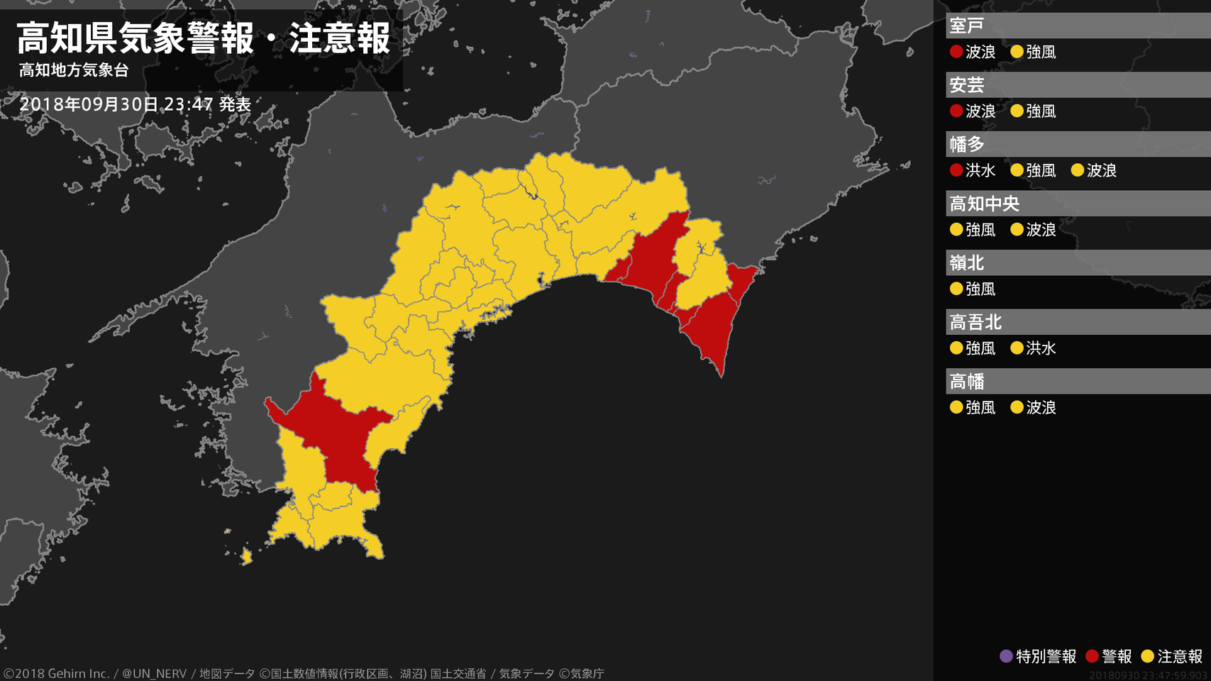 【高知県 気象警報・注意報 2018年09月30日 23:48】