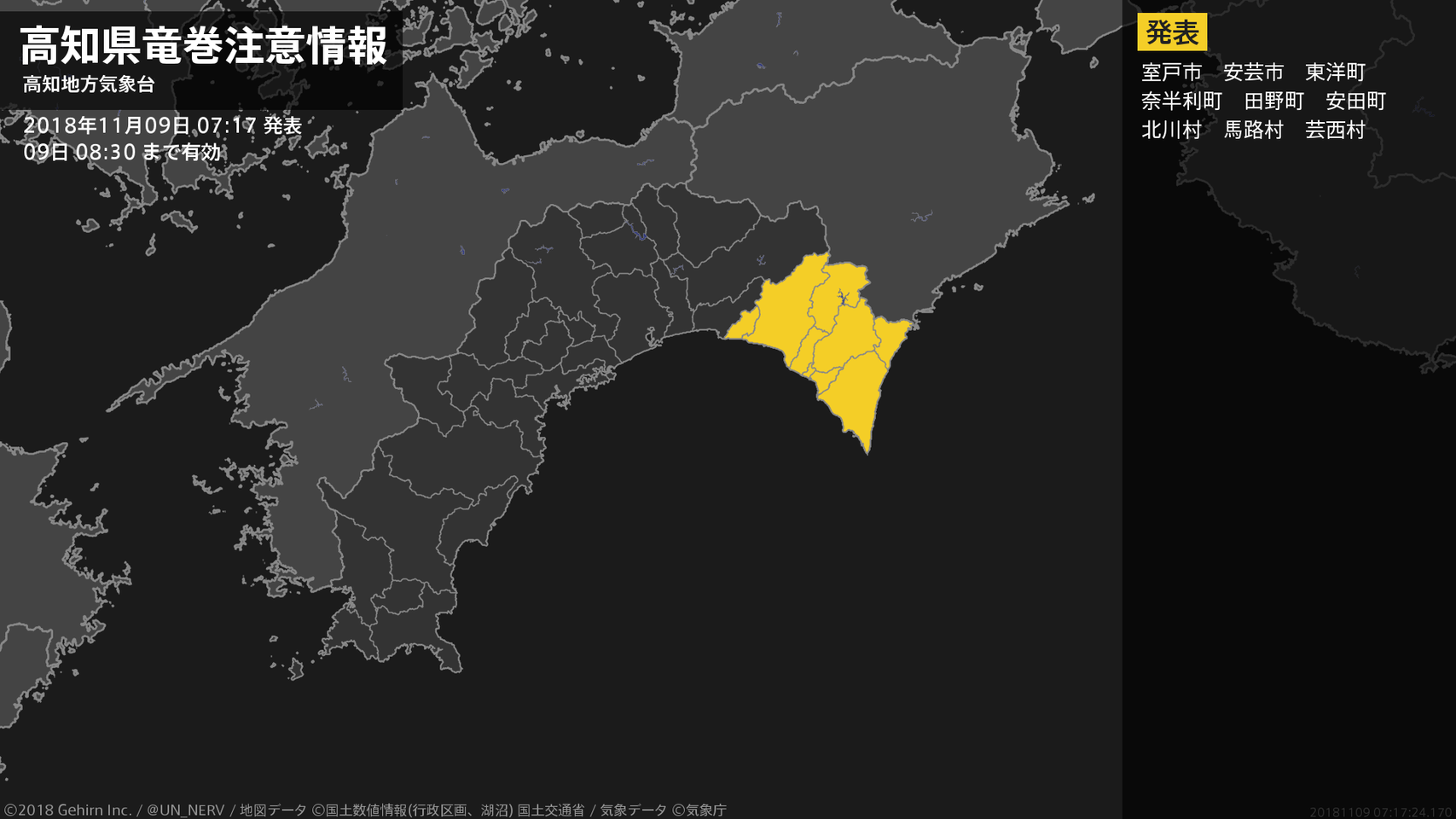【雷と突風に関する全般気象情報 2018年11月09日 04:31】