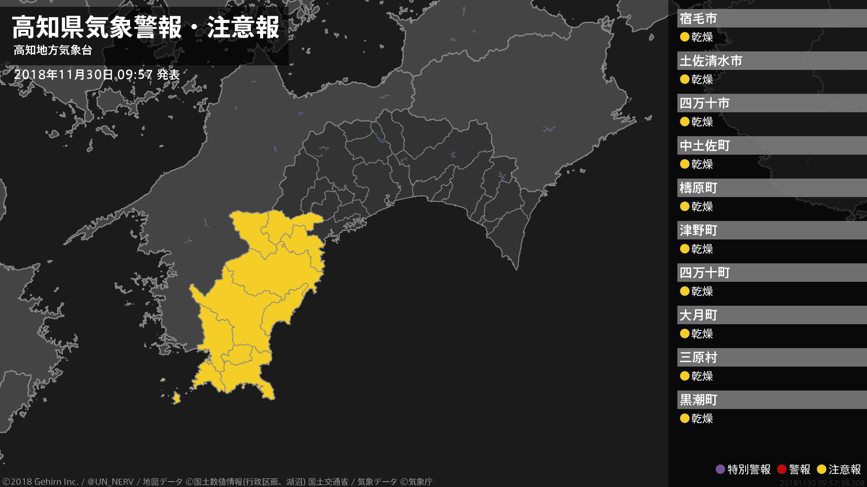 【高知県 気象警報・注意報 2018年11月30日 09:57】