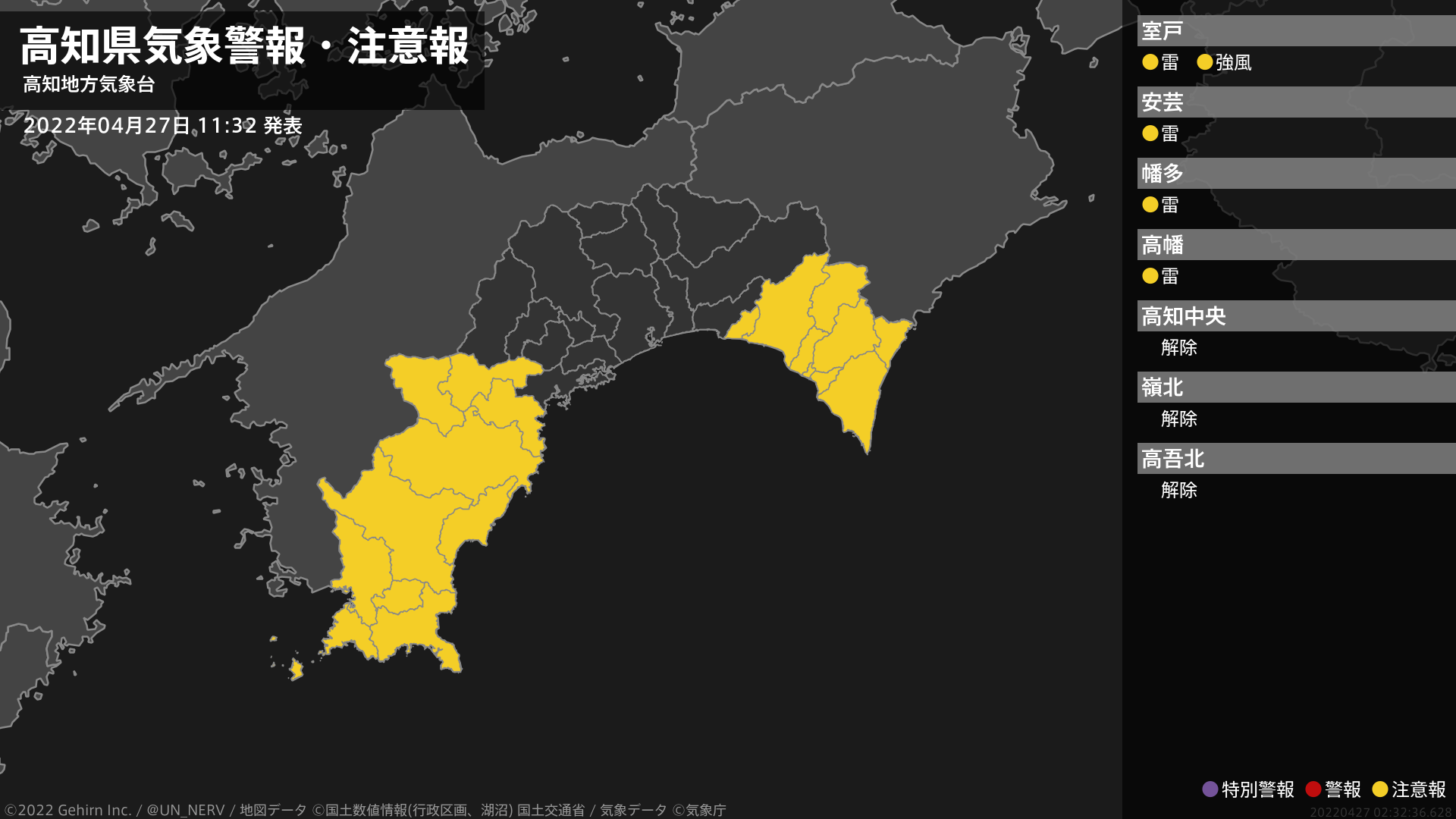 【大雨と雷及び突風に関する全般気象情報 2022年04月27日 04:58】