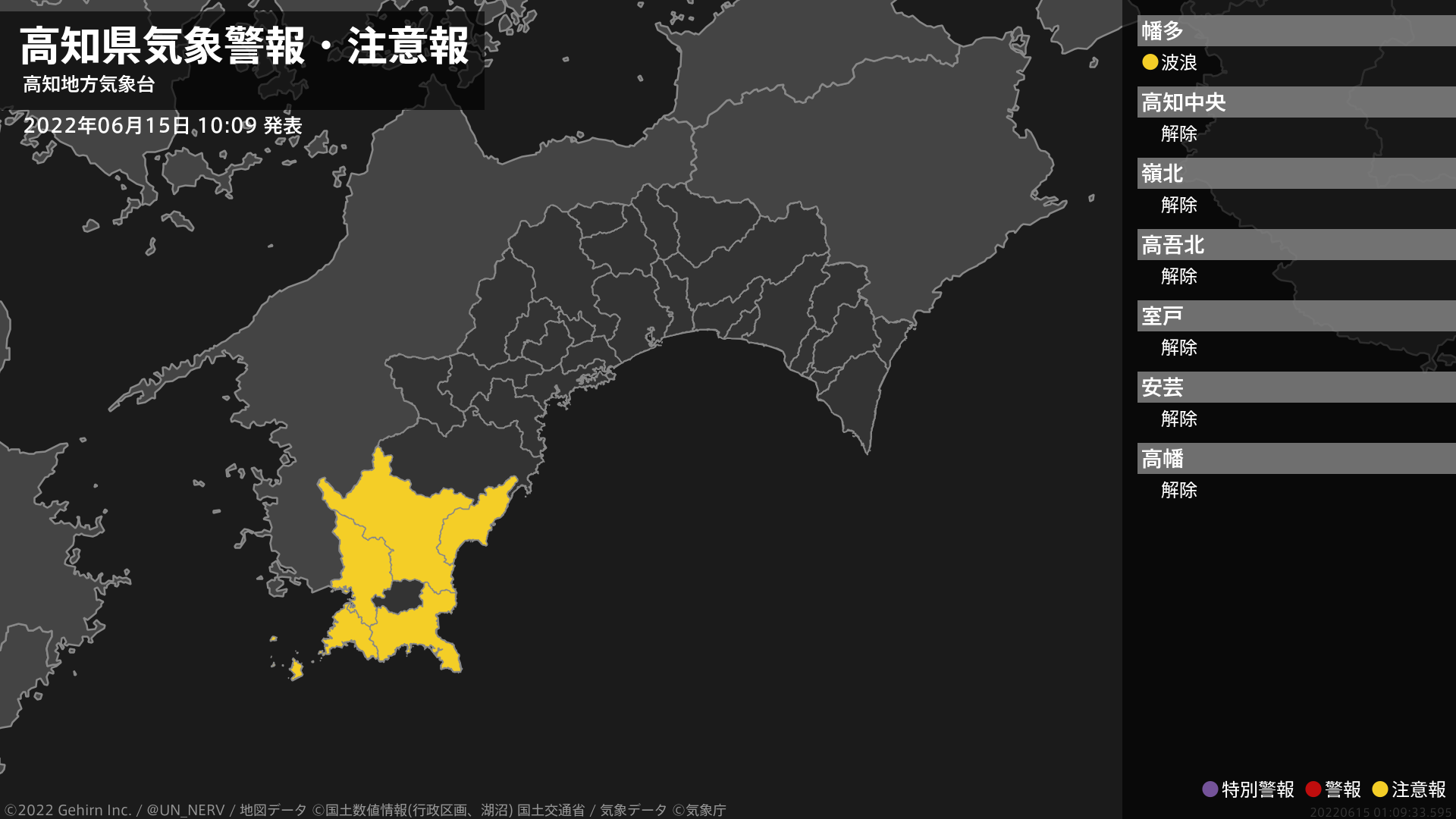 【高知県 気象警報・注意報 2022年06月15日 20:41】注意報を解除します。#気象警報注意報 #高知県