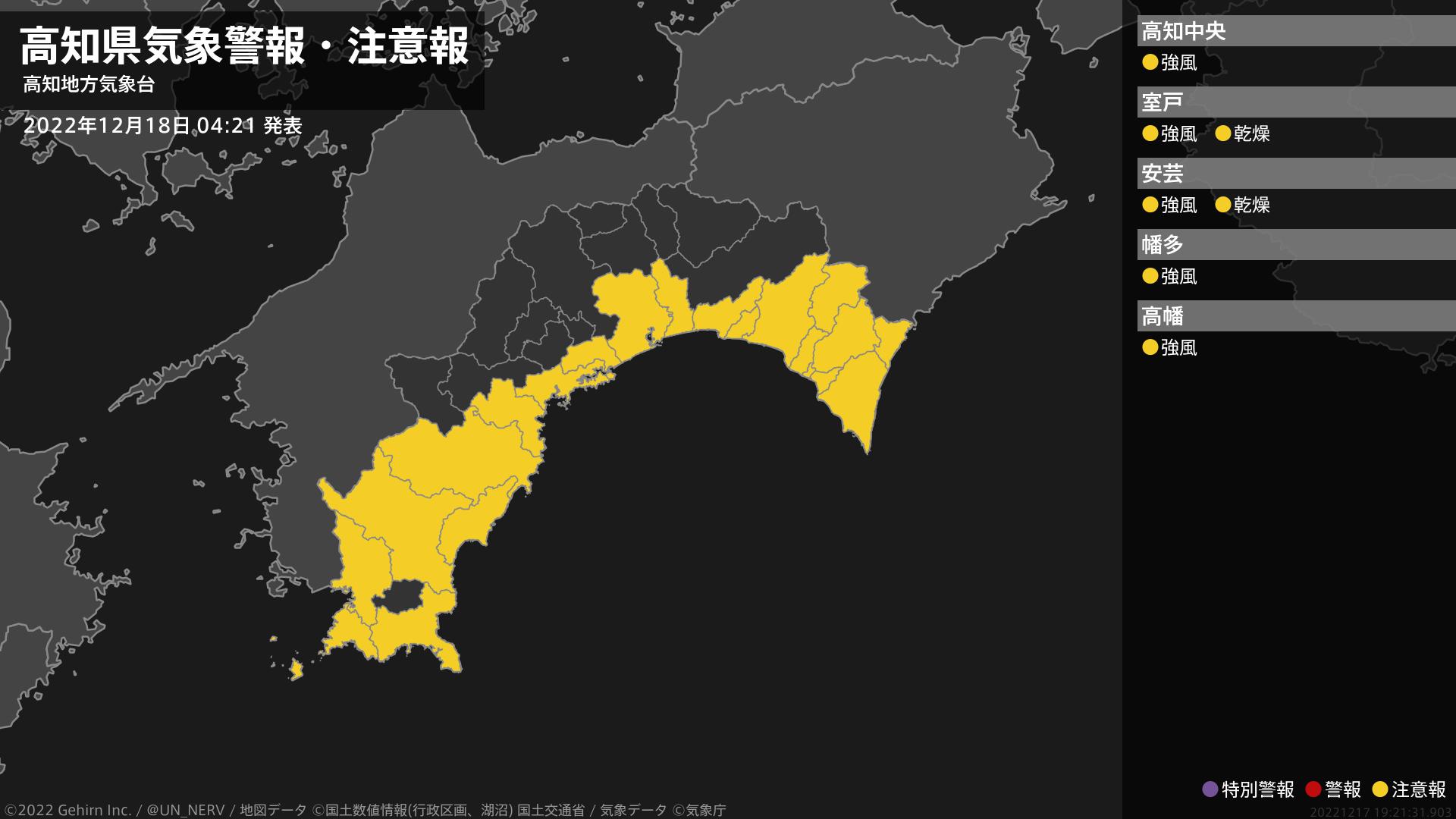【高知県 気象警報・注意報 2022年12月18日 04:21】