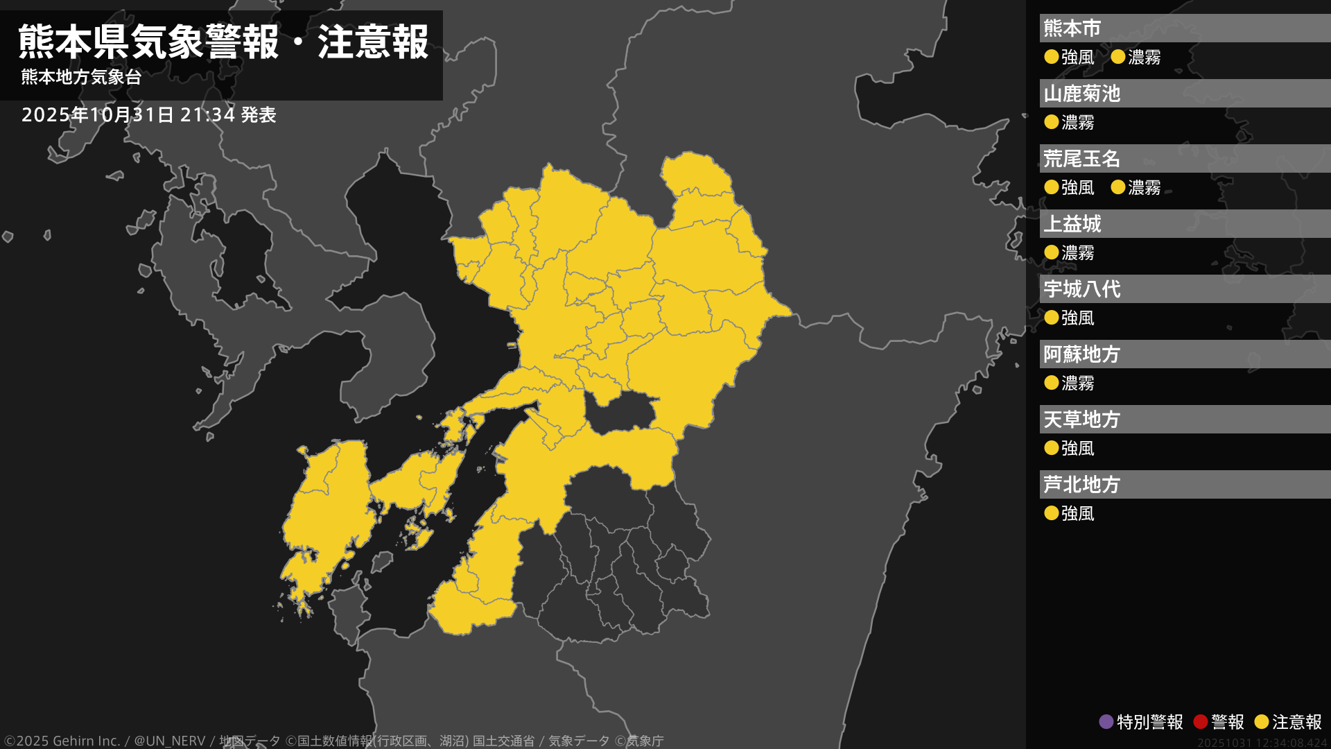 【暴風と高波及び大雨に関する全般気象情報 2025年11月01日 04:30】