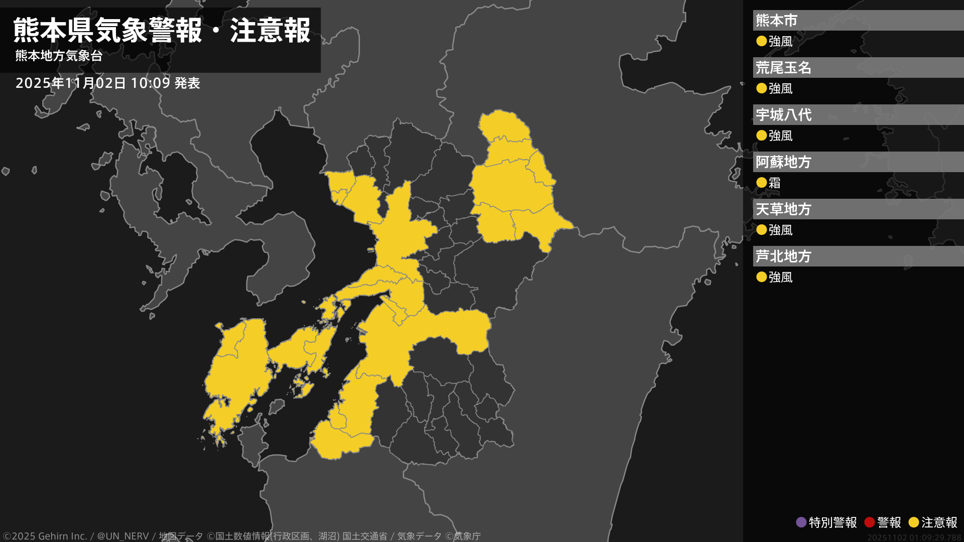 【大雨と雷及び突風に関する全般気象情報 2025年11月02日 16:44】