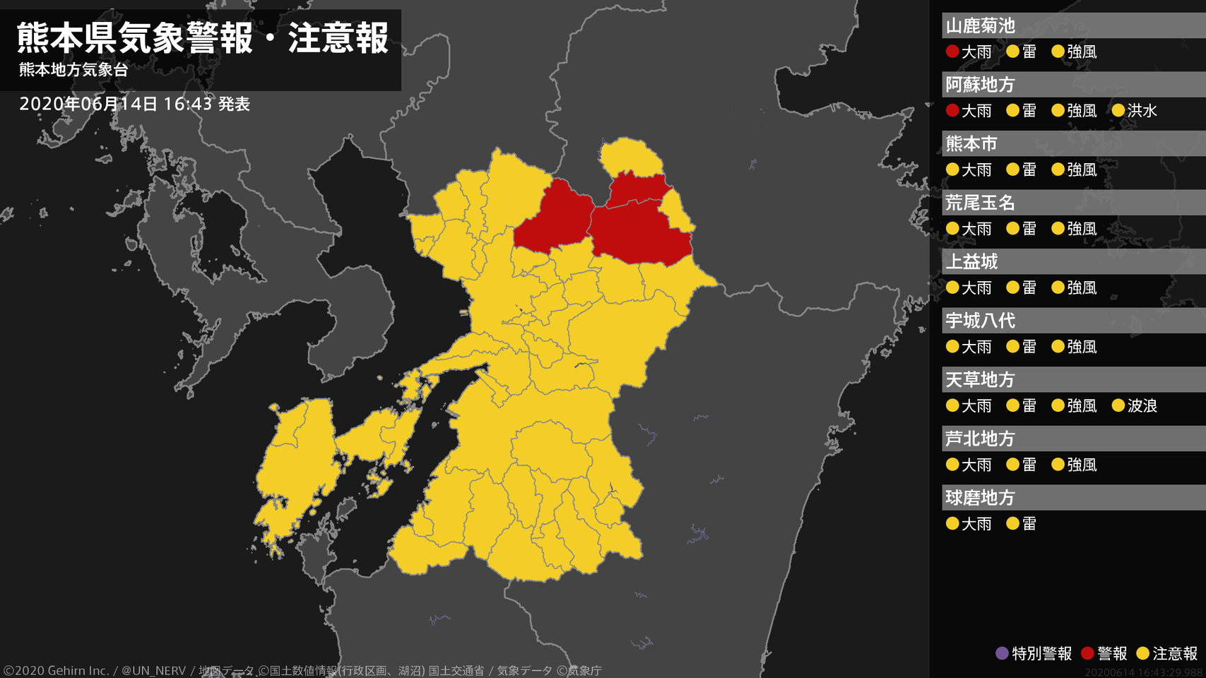 【大雨と雷及び突風に関する全般気象情報 2020年06月14日 16:25】