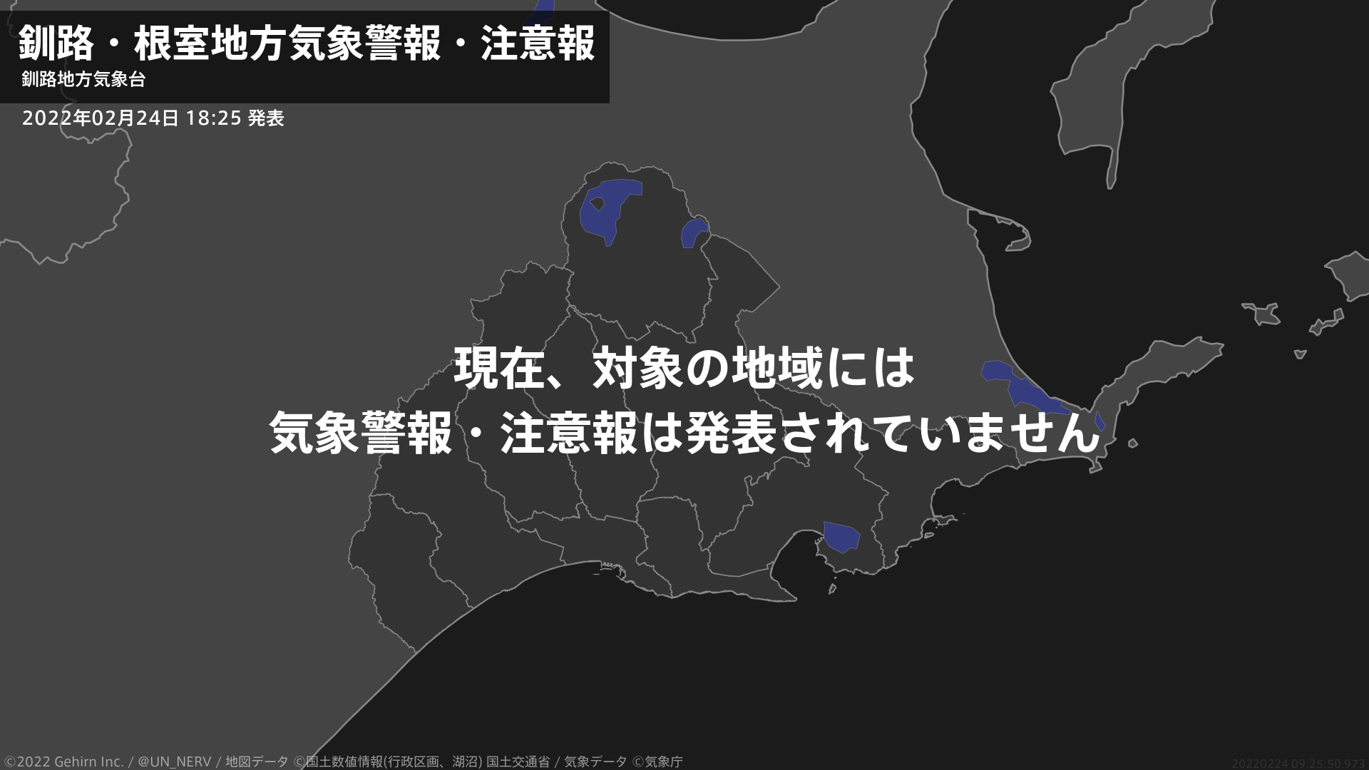 【釧路・根室地方 気象警報・注意報 2022年02月24日 18:25】注意報を解除します。#気象警報注意報 #釧路地方