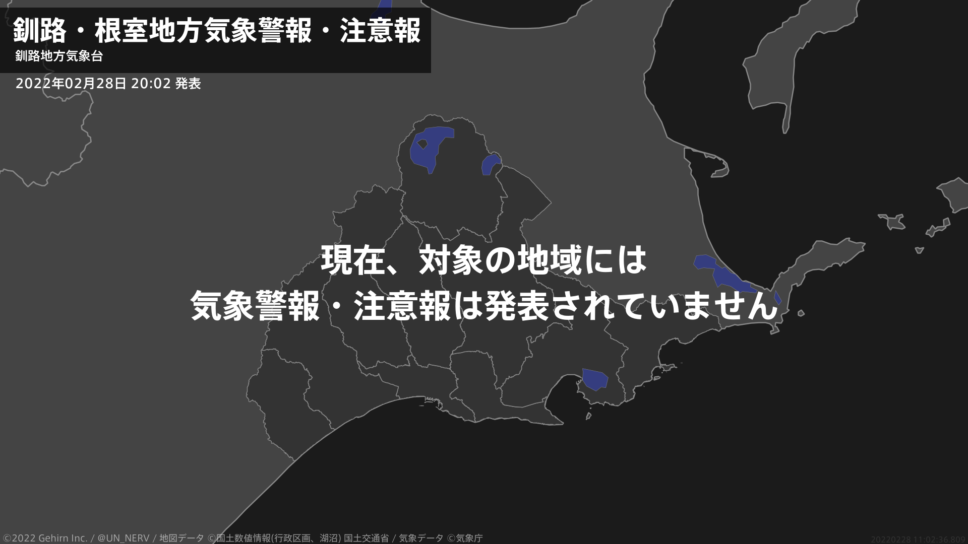 【釧路・根室地方 気象警報・注意報 2022年02月28日 20:02】注意報を解除します。#気象警報注意報 #釧路地方