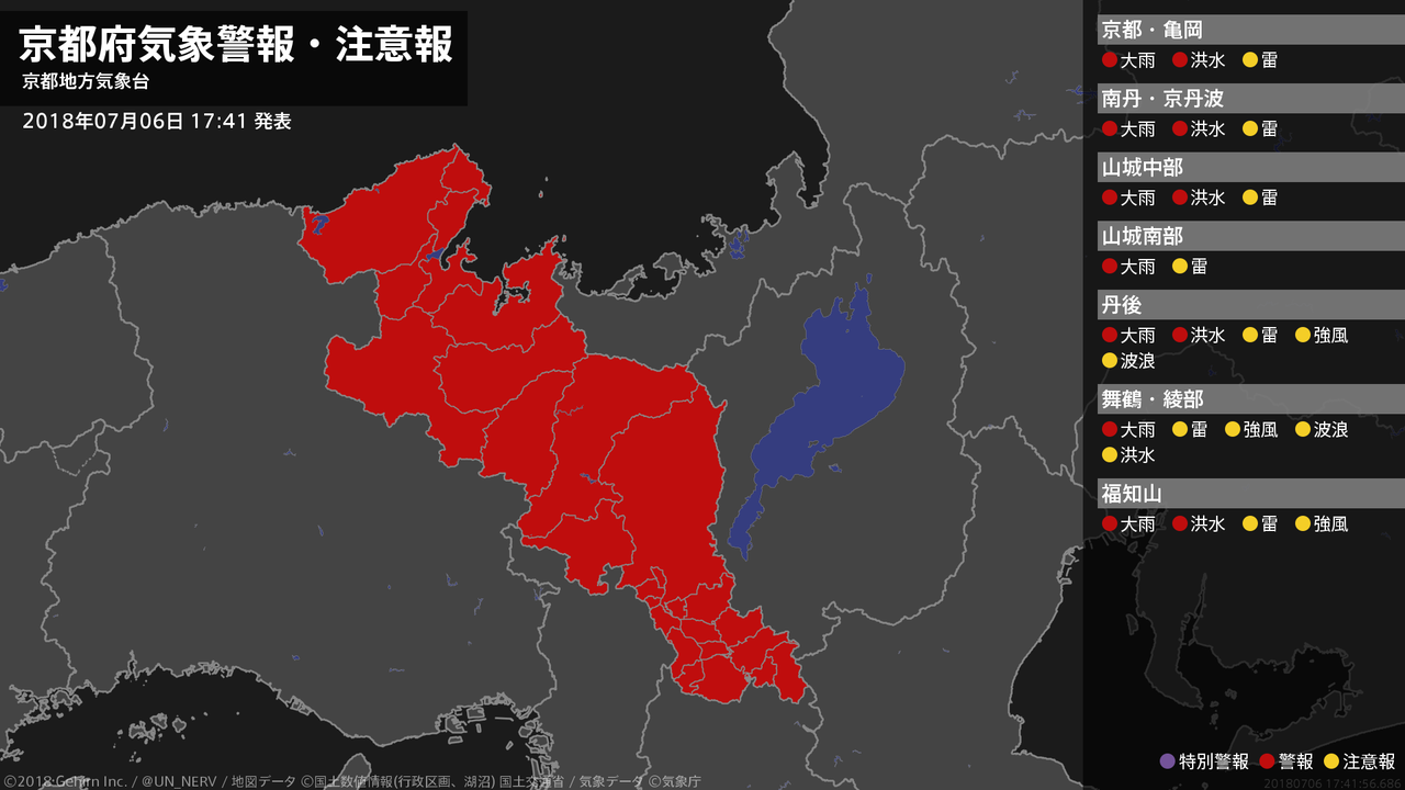 【記録的な大雨に関する全般気象情報 2018年07月06日 17:17】