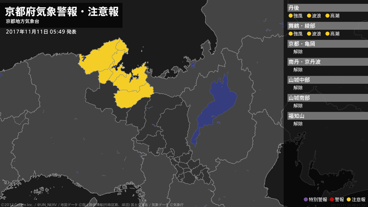 【京都府 気象警報・注意報 2017年11月11日 05:49】