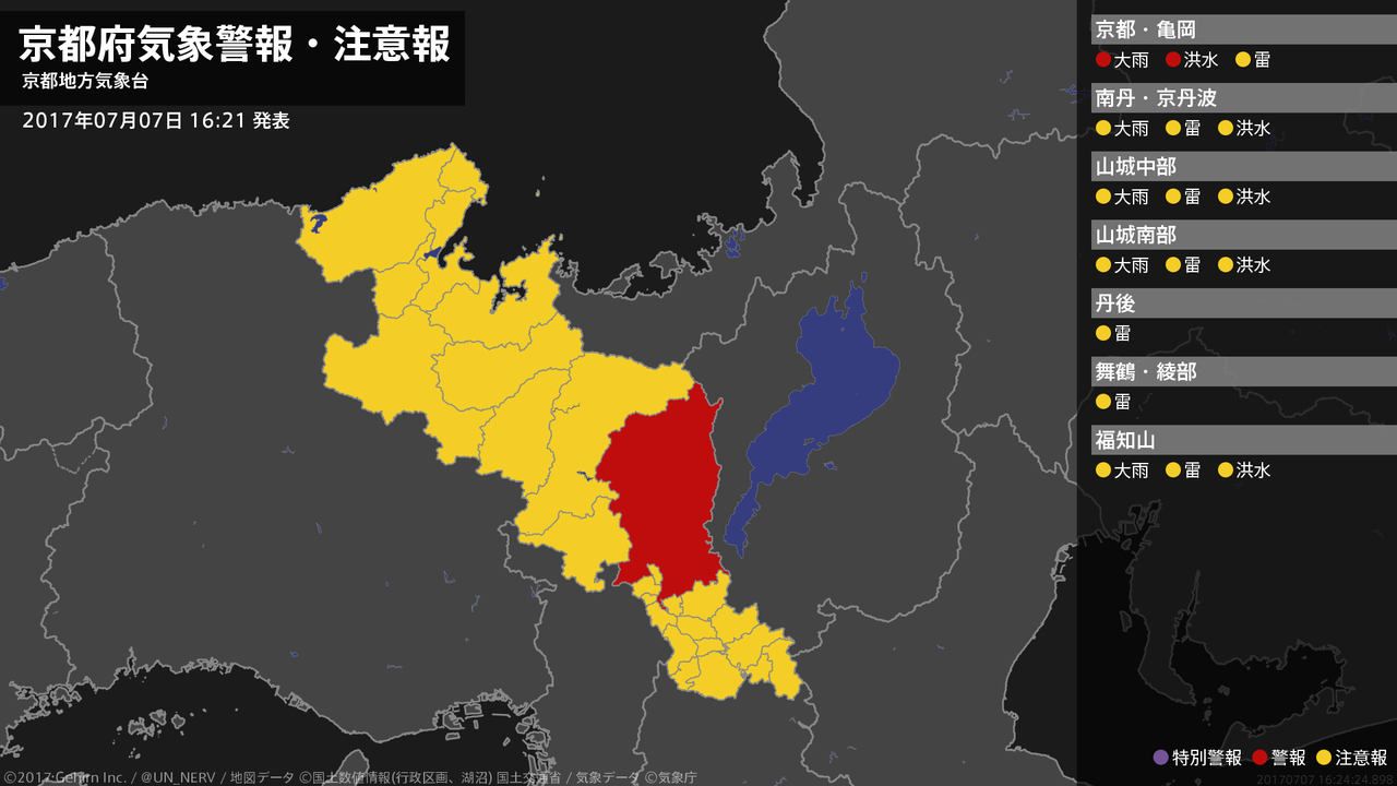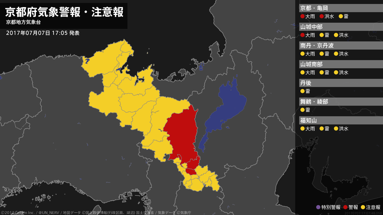【京都府 気象警報 2017年07月07日 17:07】
