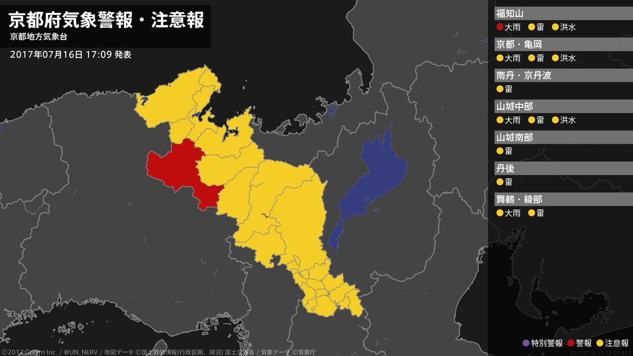 【京都府 気象警報・注意報 2017年07月16日 16:12】