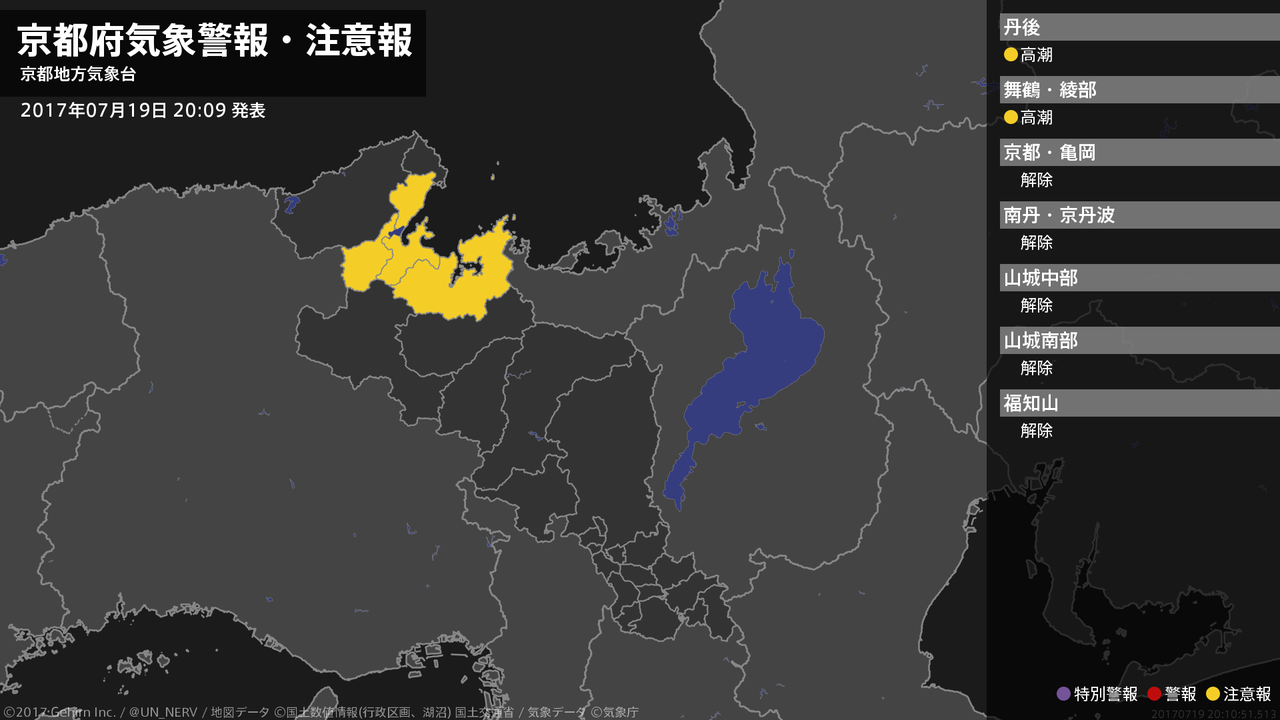 【京都府 気象警報・注意報 2017年07月19日 20:10】