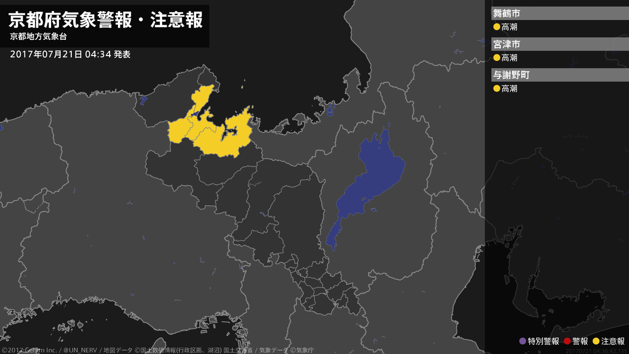 【京都府 気象警報・注意報 2017年07月21日 04:36】