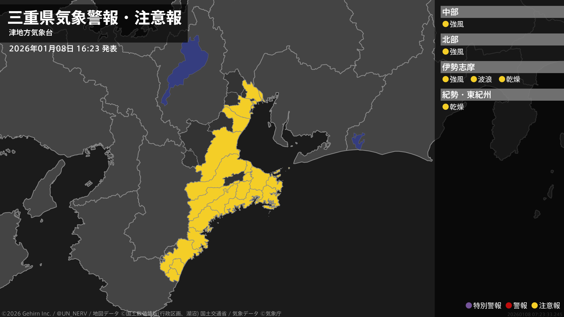 【暴風と高波に関する全般気象情報 2026年01月08日 17:07】