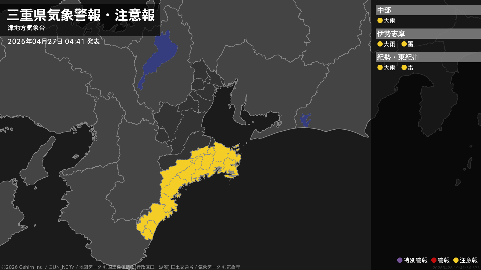 【三重県 気象警報・注意報 2026年04月27日 04:41】