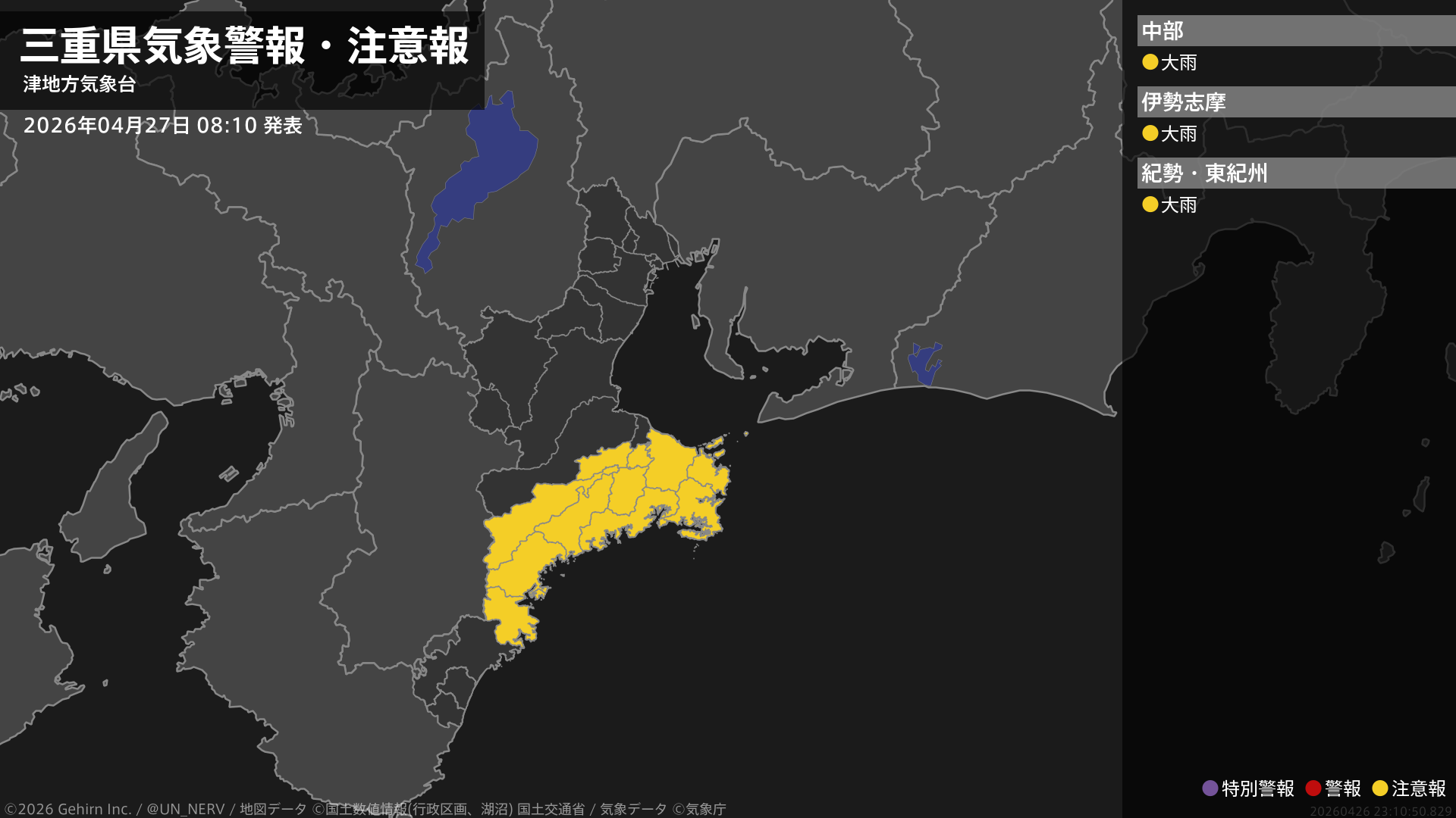 【三重県 気象警報・注意報 2026年04月26日 23:43】