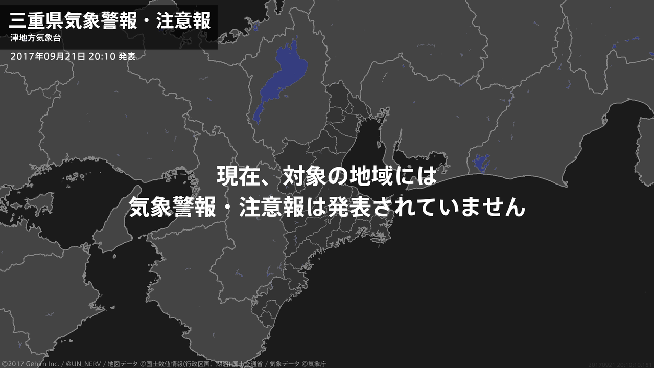 【三重県 気象警報・注意報 2017年09月21日 20:10】注意報を解除します。#気象警報注意報 #三重県