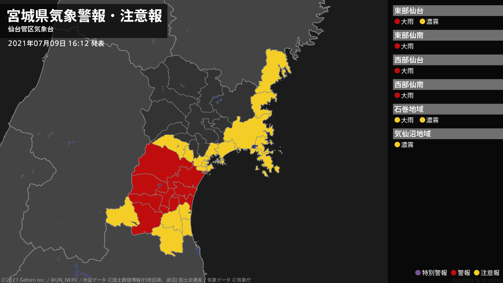 【大雨と雷及び突風に関する全般気象情報 2021年07月09日 16:40】