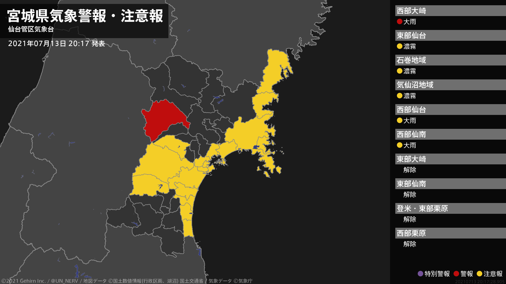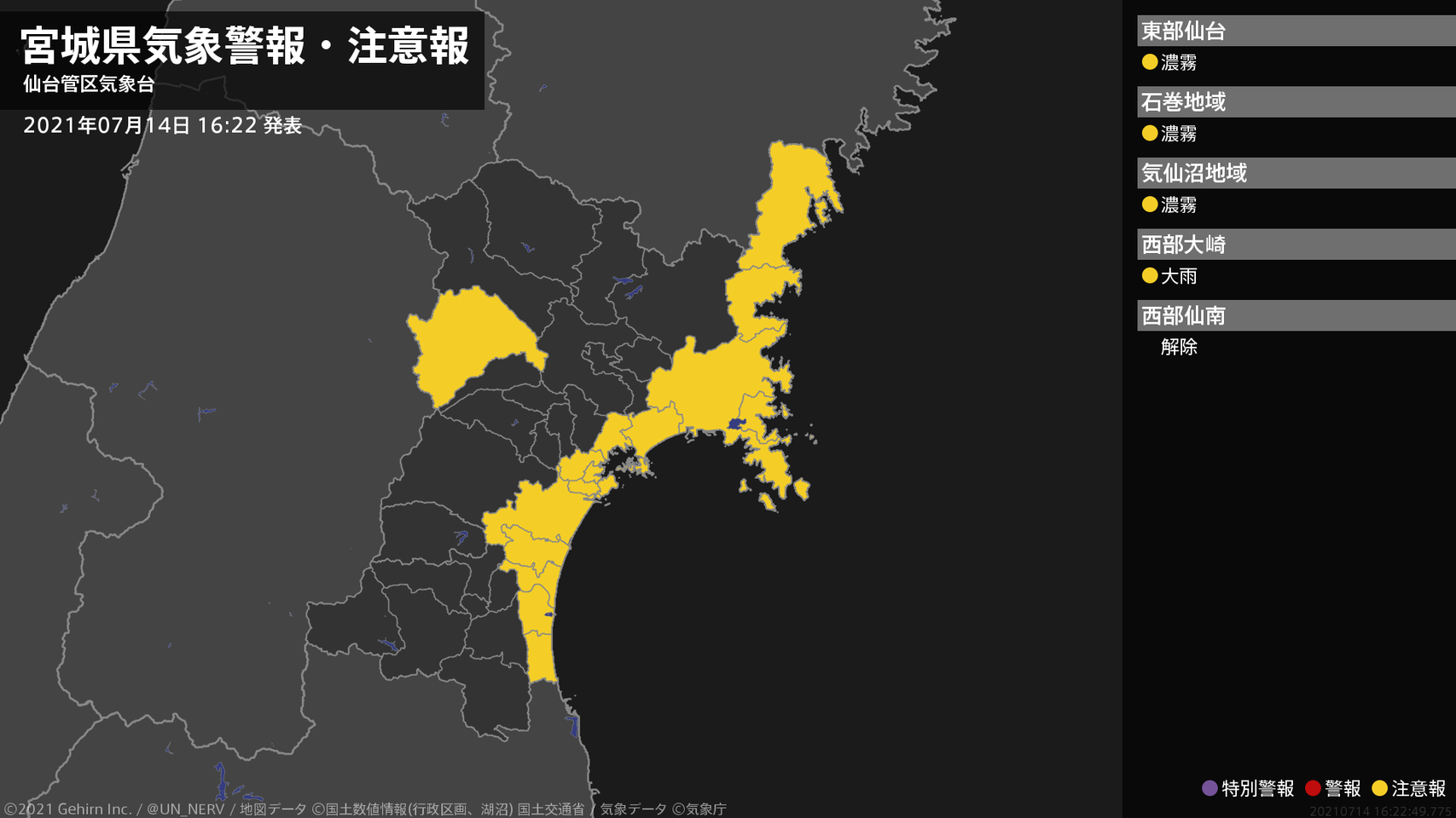 【大雨と雷及び突風に関する全般気象情報 2021年07月14日 16:48】