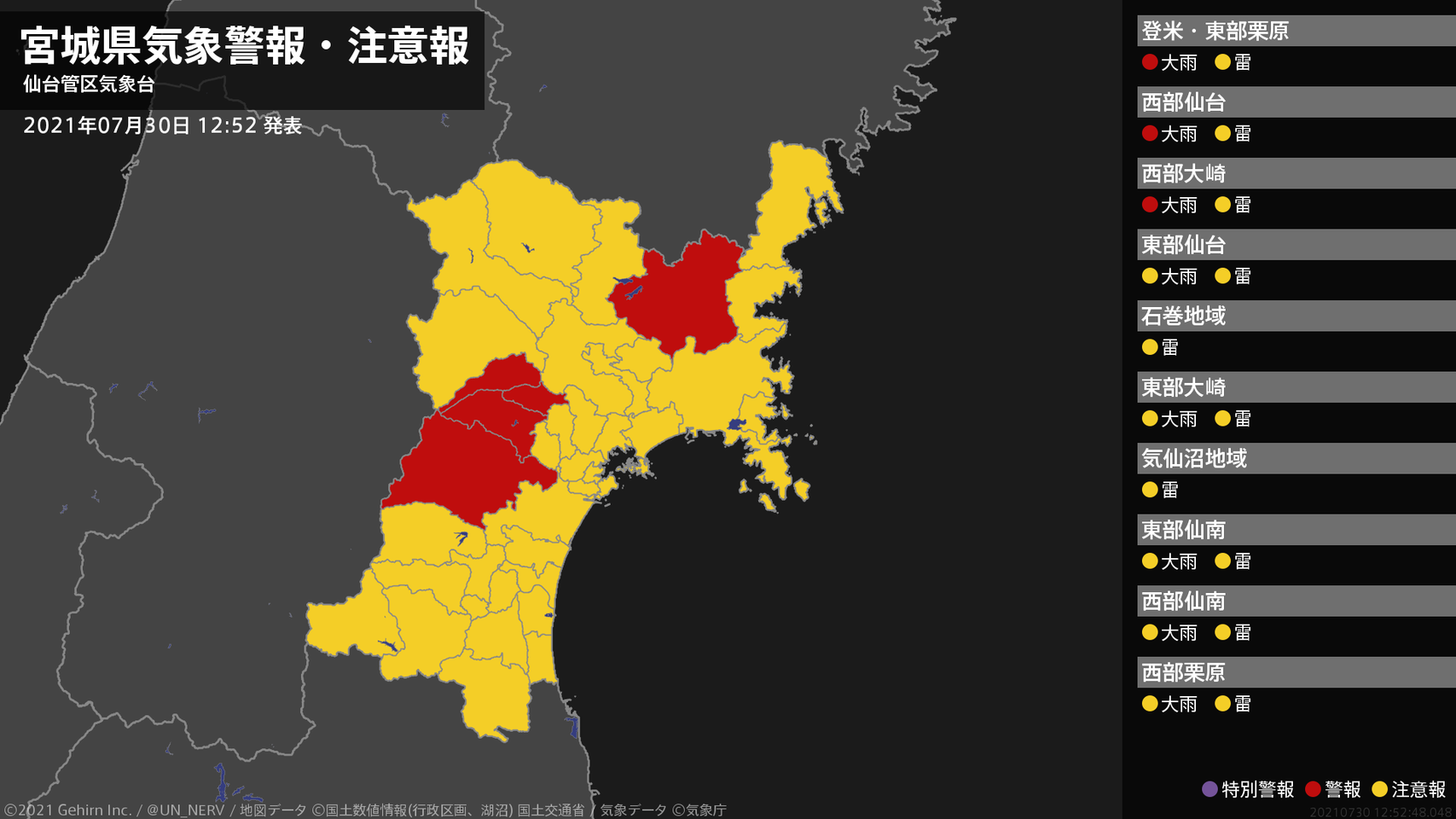 【大雨と雷及び突風に関する全般気象情報 2021年07月30日 16:52】