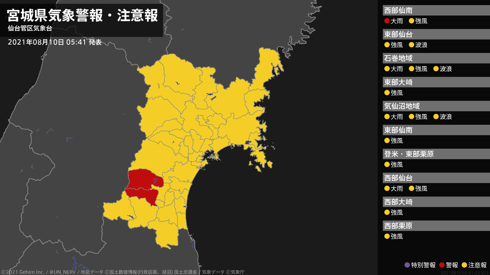 【大雨と暴風及び高波に関する全般気象情報 2021年08月10日 05:00】
