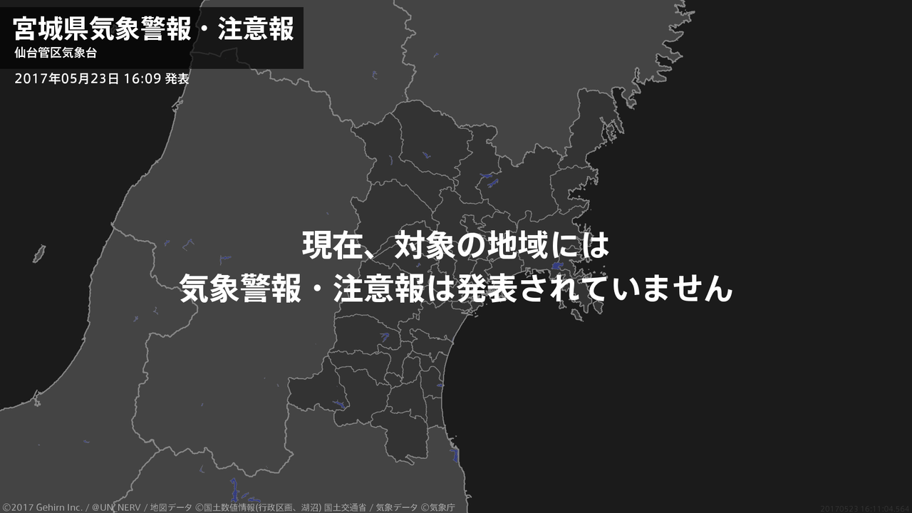 【宮城県 気象警報・注意報 2017年05月23日 16:11】注意報を解除します。#気象警報注意報 #宮城県