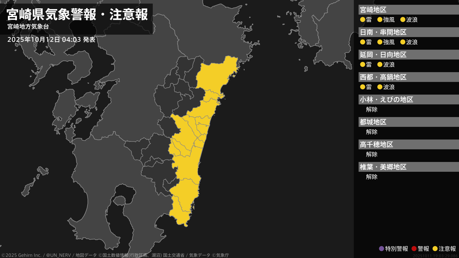 【大雨と雷及び突風に関する全般気象情報 2025年10月04日 10:55】