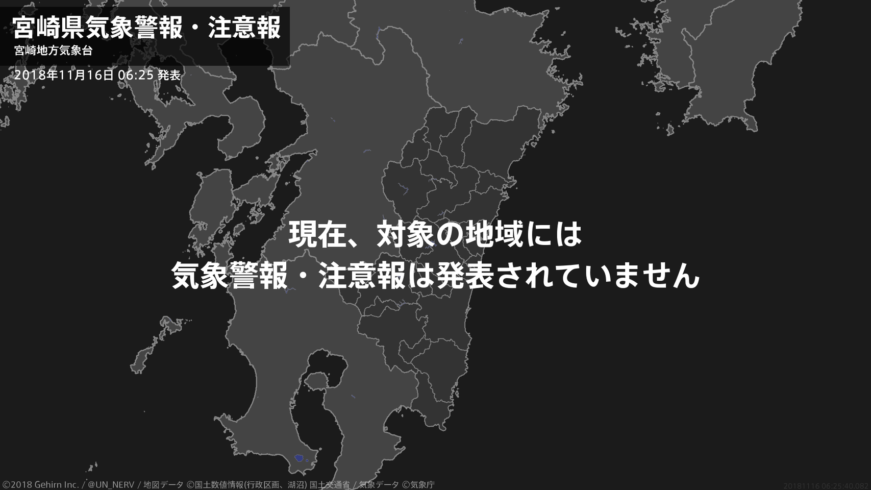 【宮崎県 気象警報・注意報 2018年11月16日 06:25】