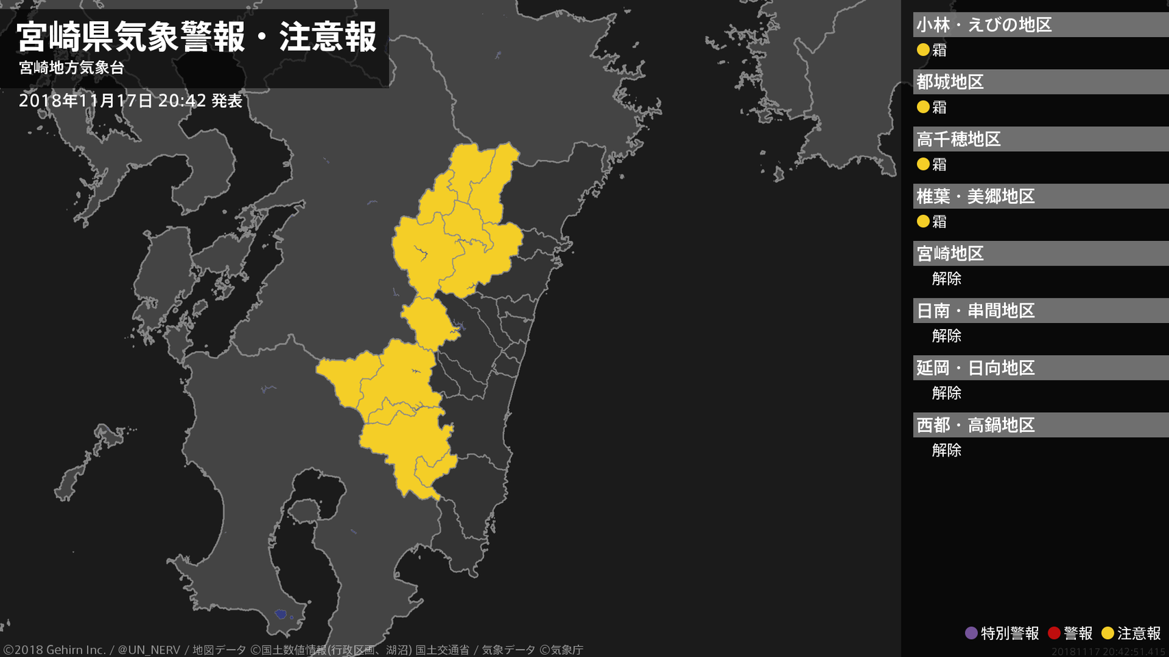 【宮崎県 気象警報・注意報 2018年11月17日 20:42】