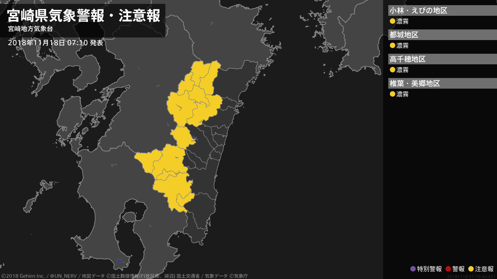 【宮崎県 気象警報・注意報 2018年11月18日 07:10】