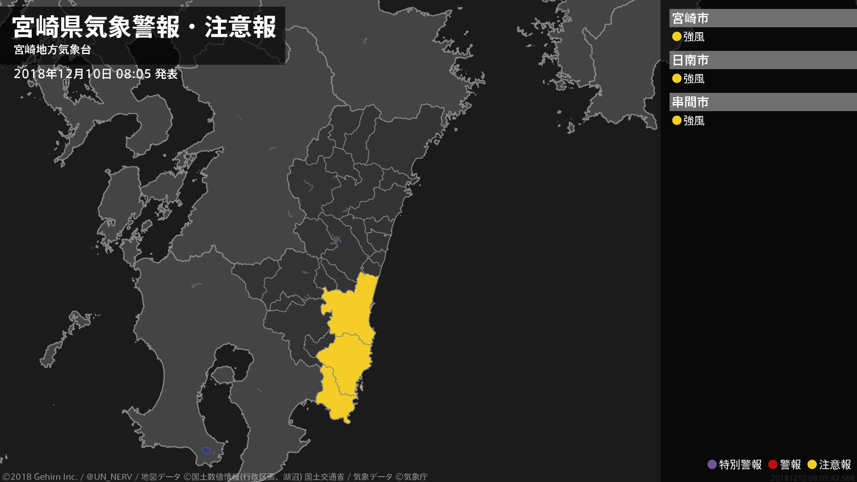 【宮崎県 気象警報・注意報 2018年12月10日 08:05】
