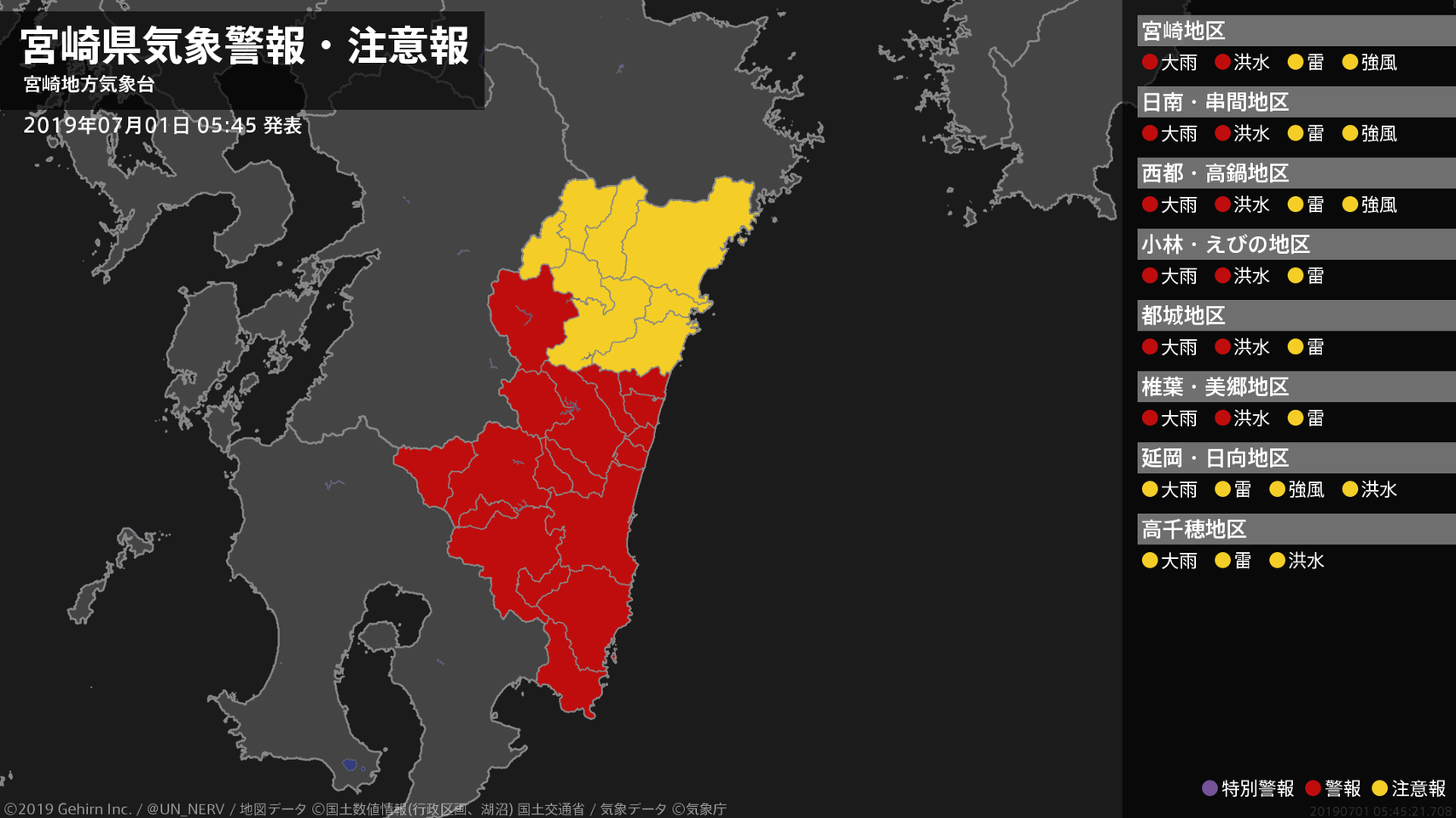 【大雨と雷及び突風に関する全般気象情報 2019年07月01日 04:45】
