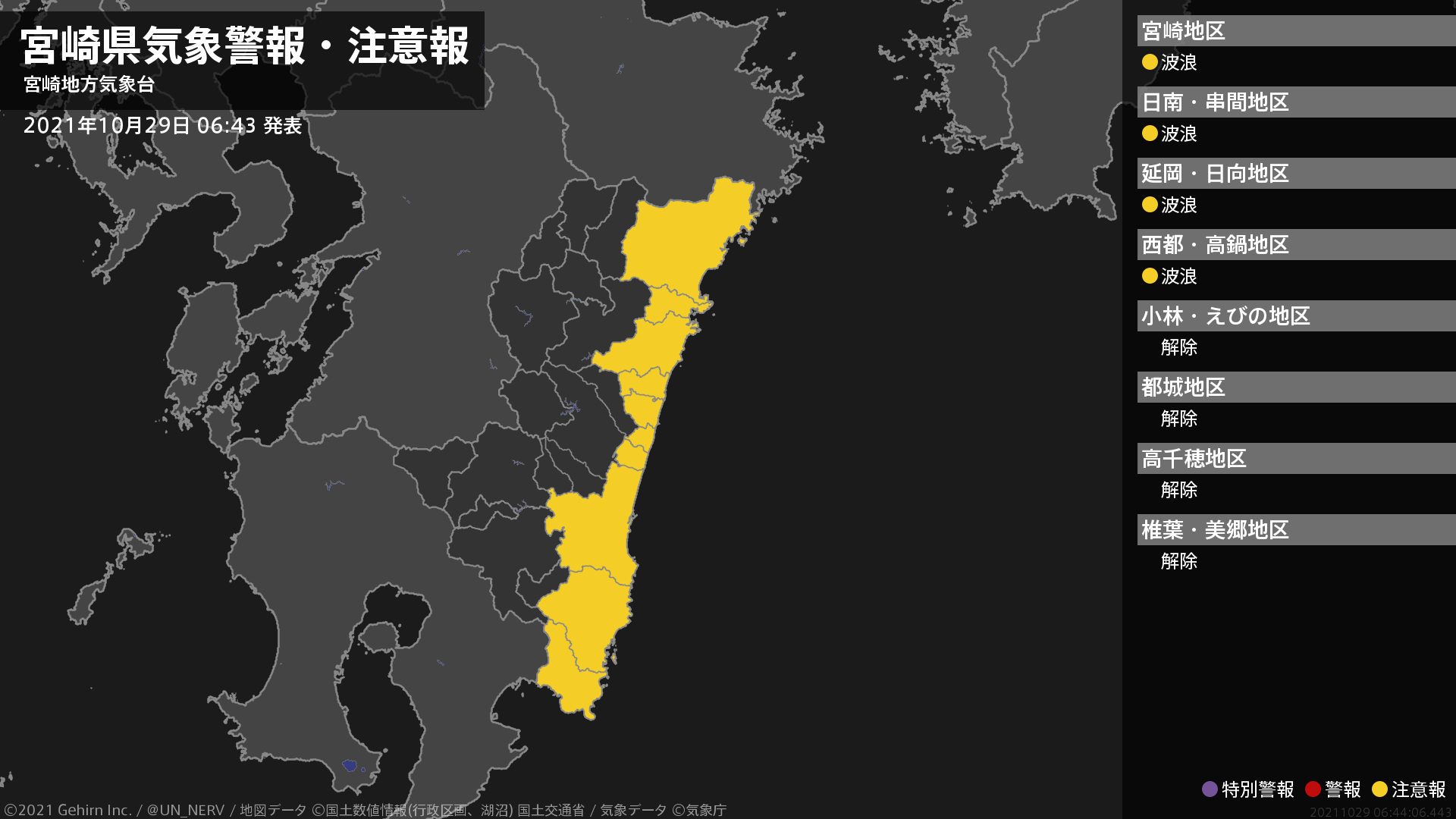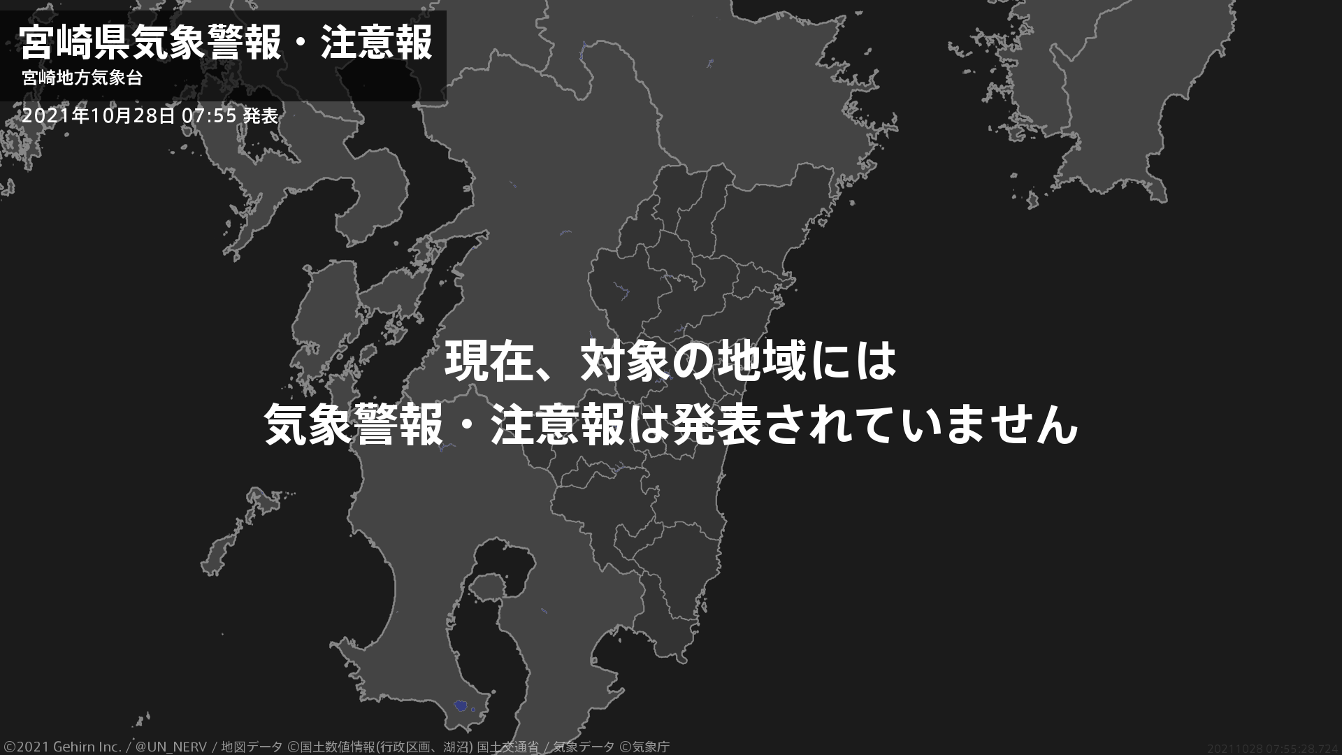【宮崎県 気象警報・注意報 2021年10月28日 07:55】注意報を解除します。#気象警報注意報 #宮崎県