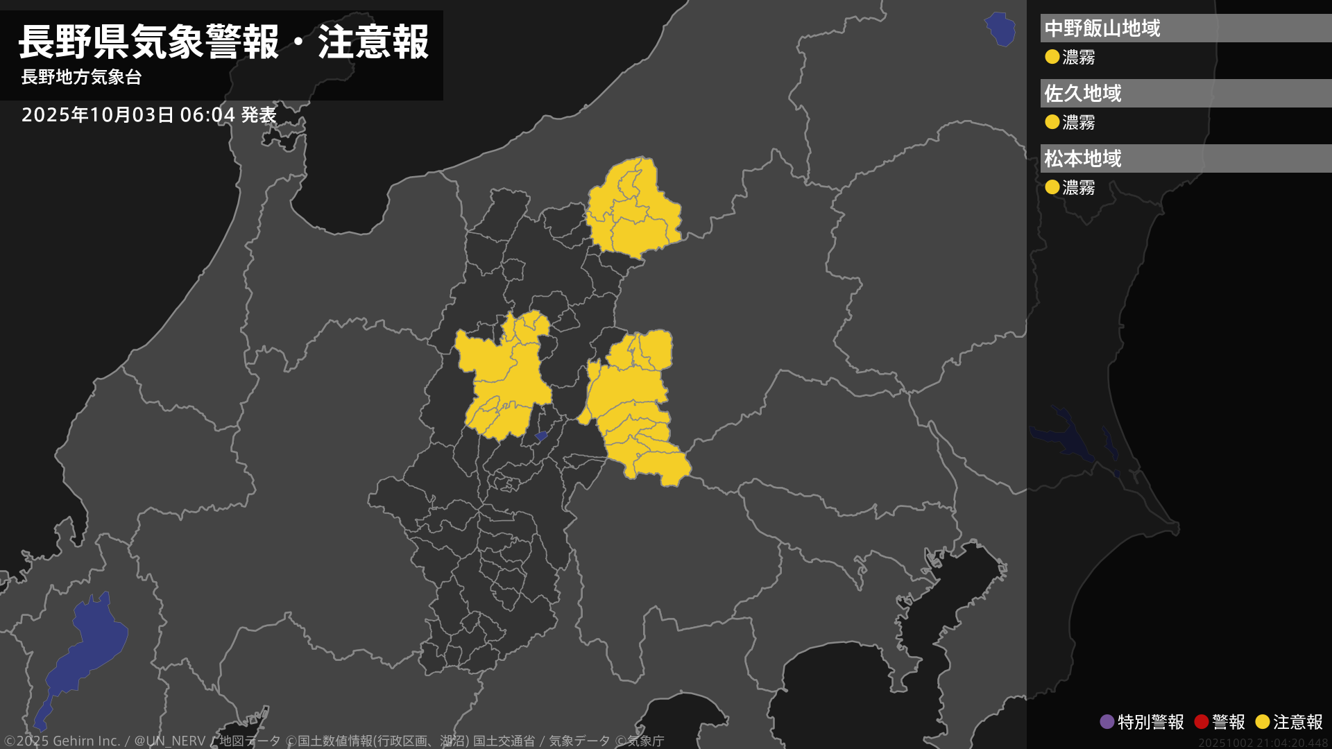 【大雨と雷及び突風に関する全般気象情報 2025年10月03日 16:42】