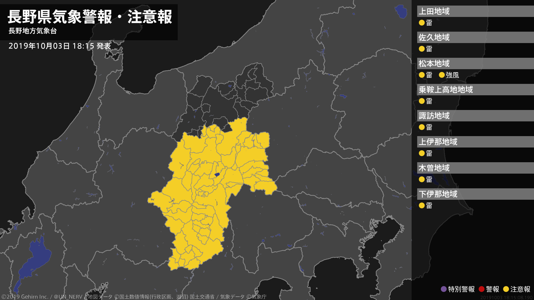 【長野県 気象警報・注意報 2019年10月03日 18:15】