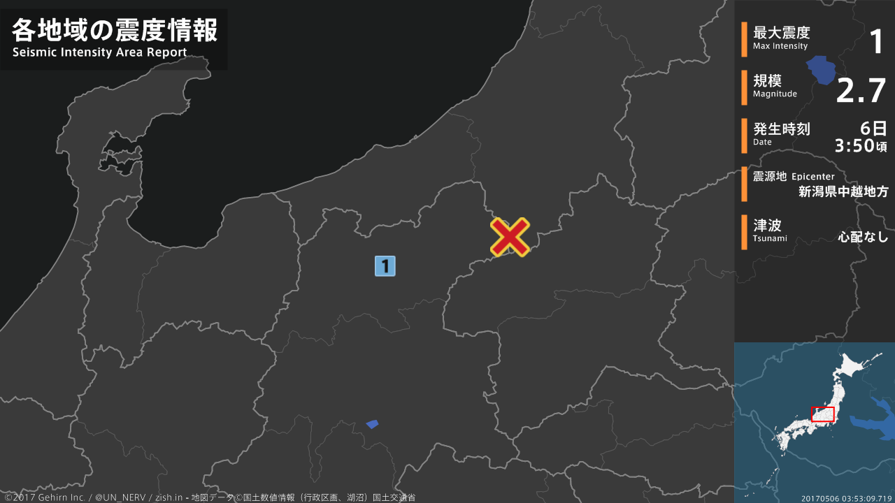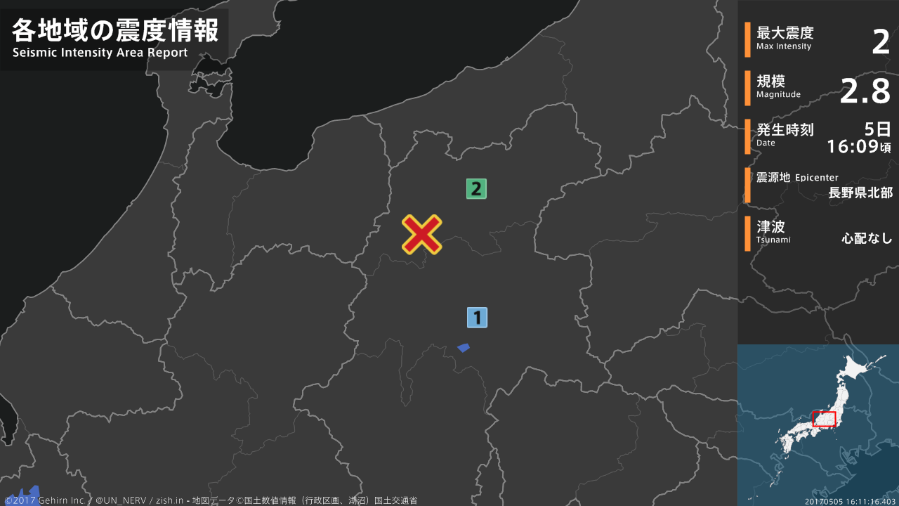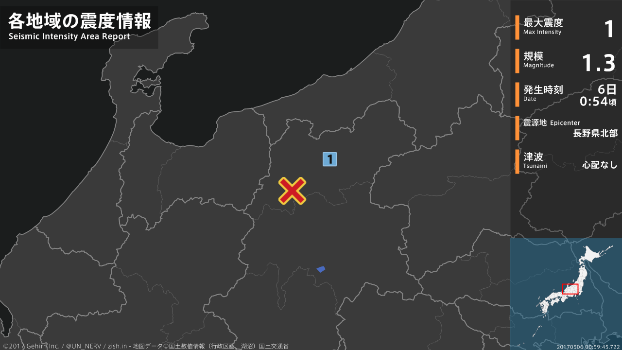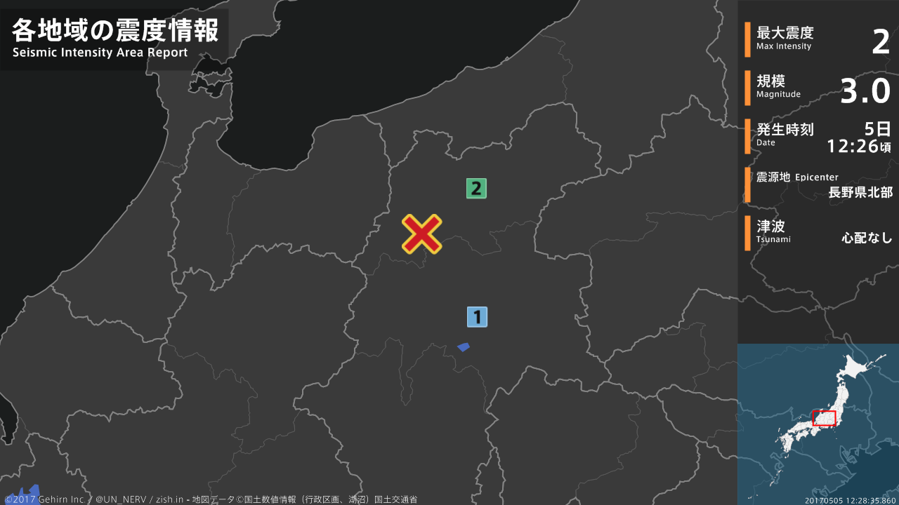 7日12時32分頃、長野県中部を震源とする地震がありました。震源の深さは約10km、地震の規模はM3.8と推定されています。この地震による津波の心配はありません。