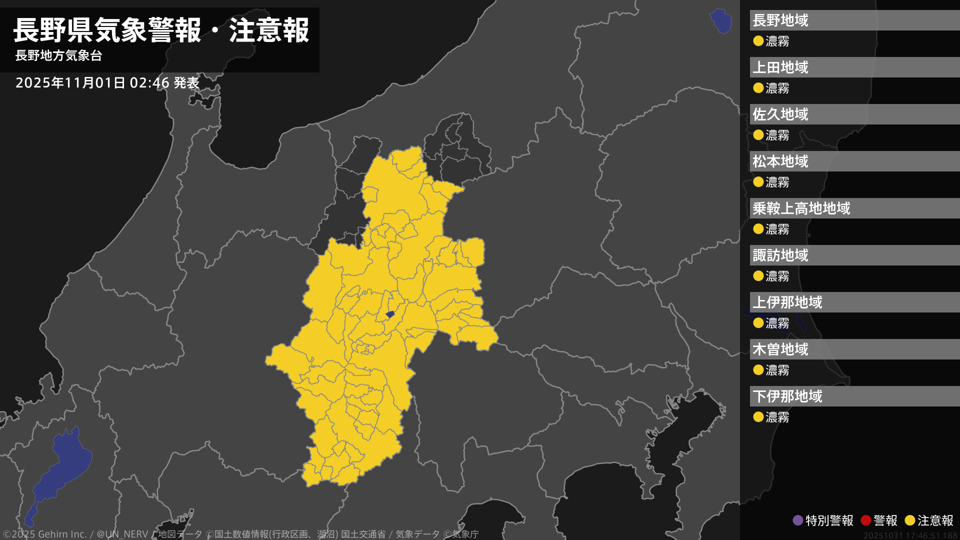【暴風と高波及び大雨に関する全般気象情報 2025年11月01日 04:30】