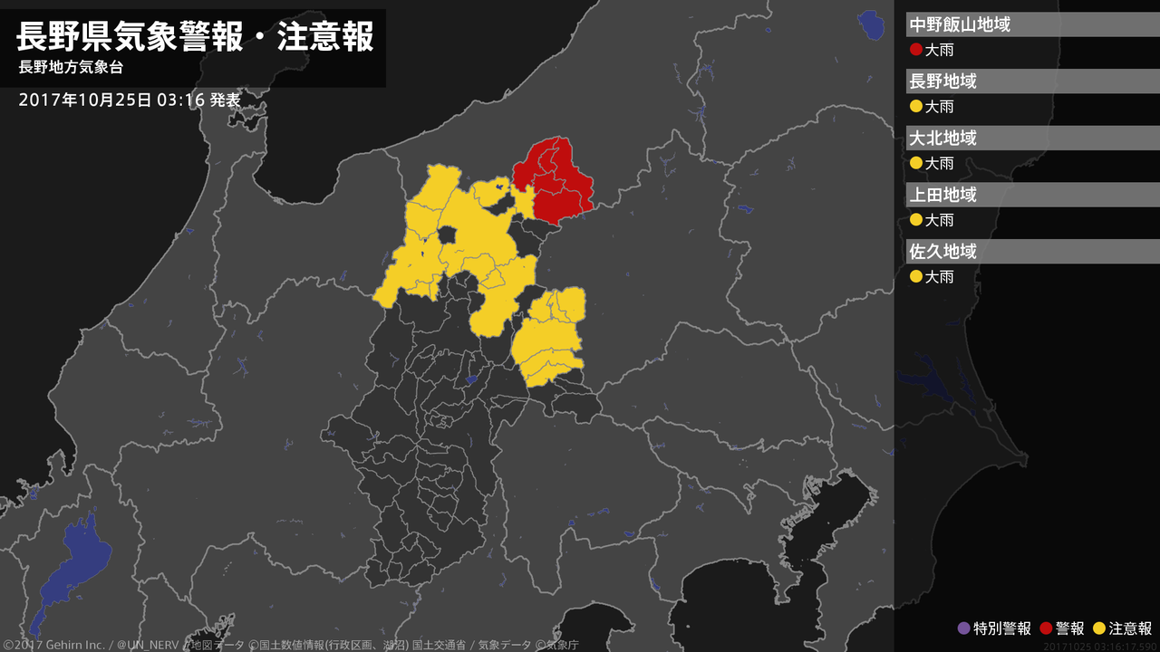 【長野県 気象警報・注意報 2017年10月25日 03:16】