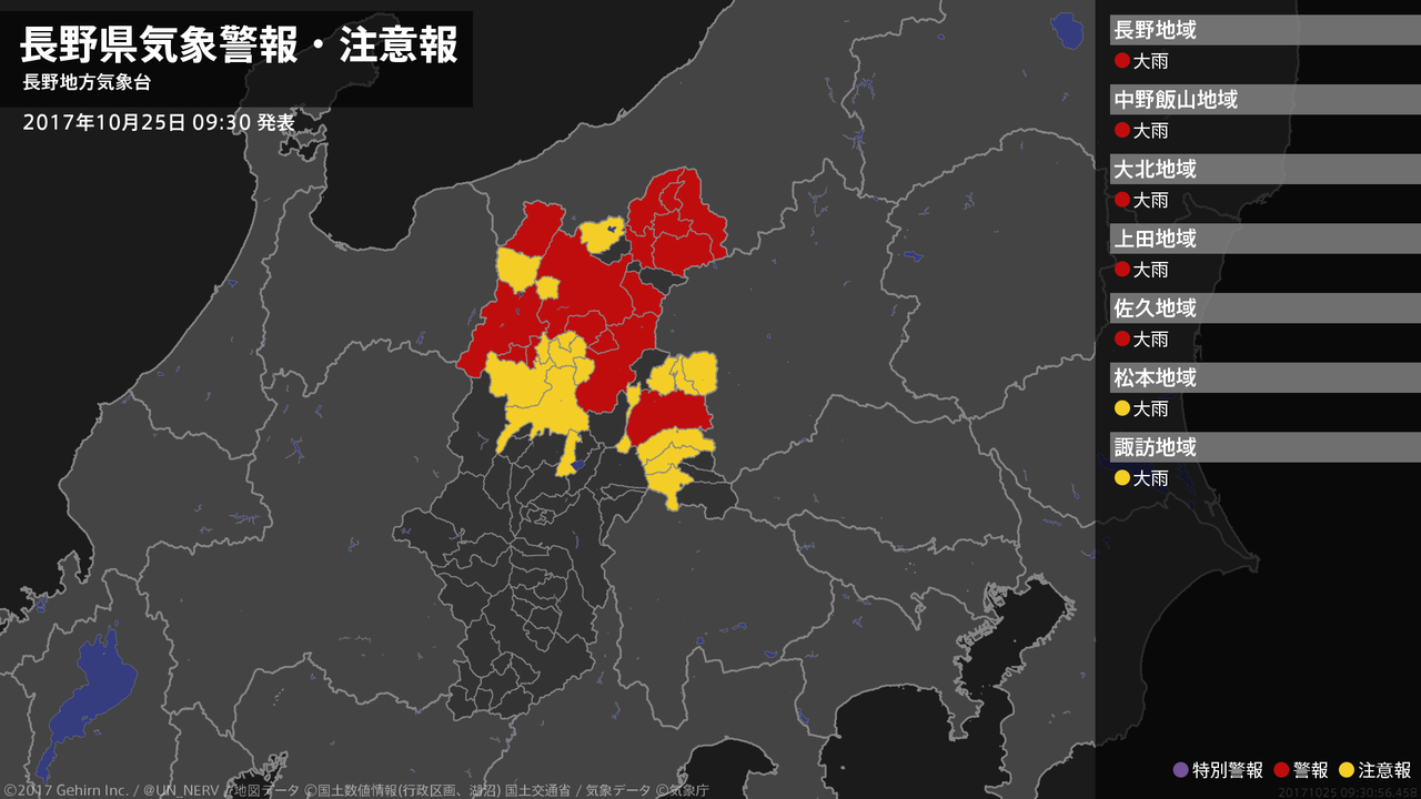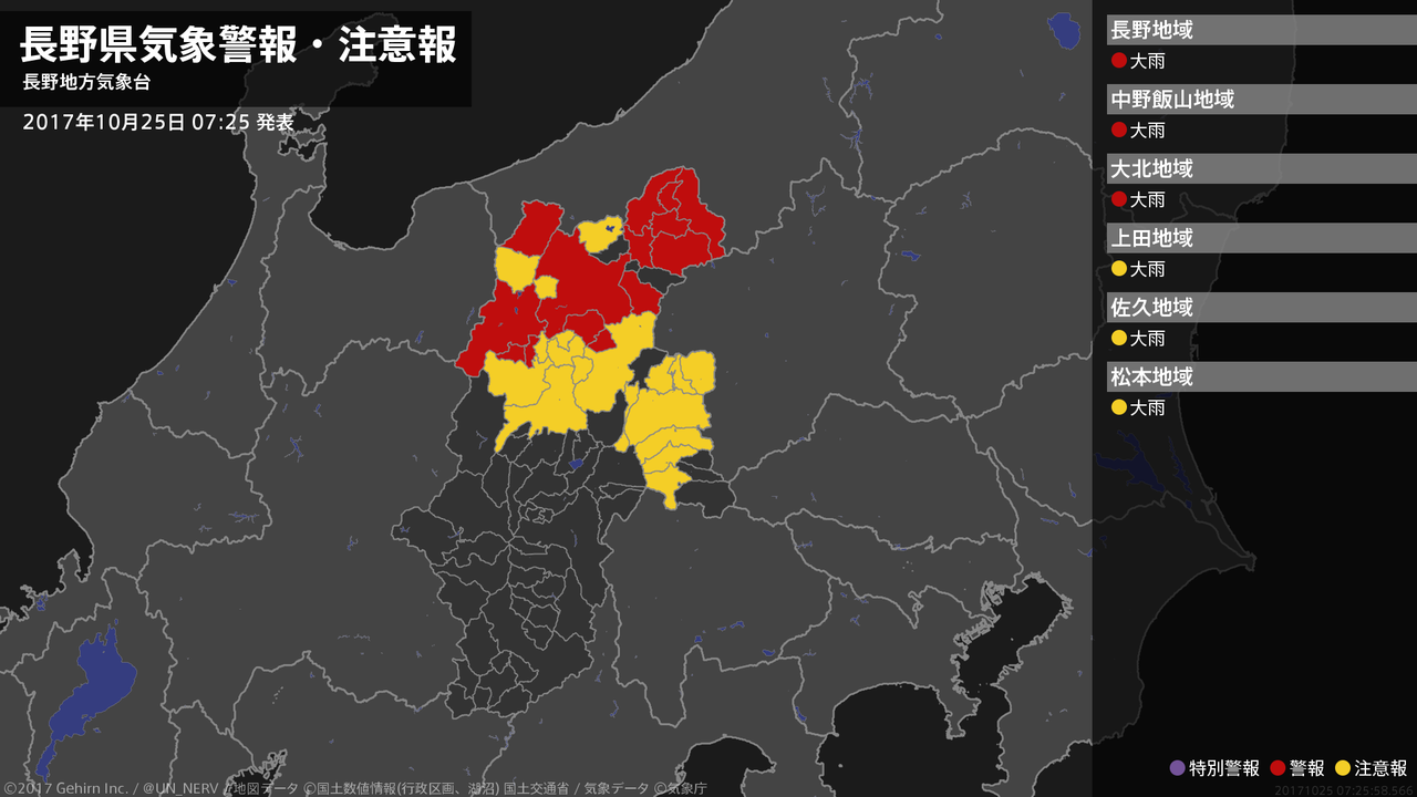 【長野県 気象警報・注意報 2017年10月25日 00:31】