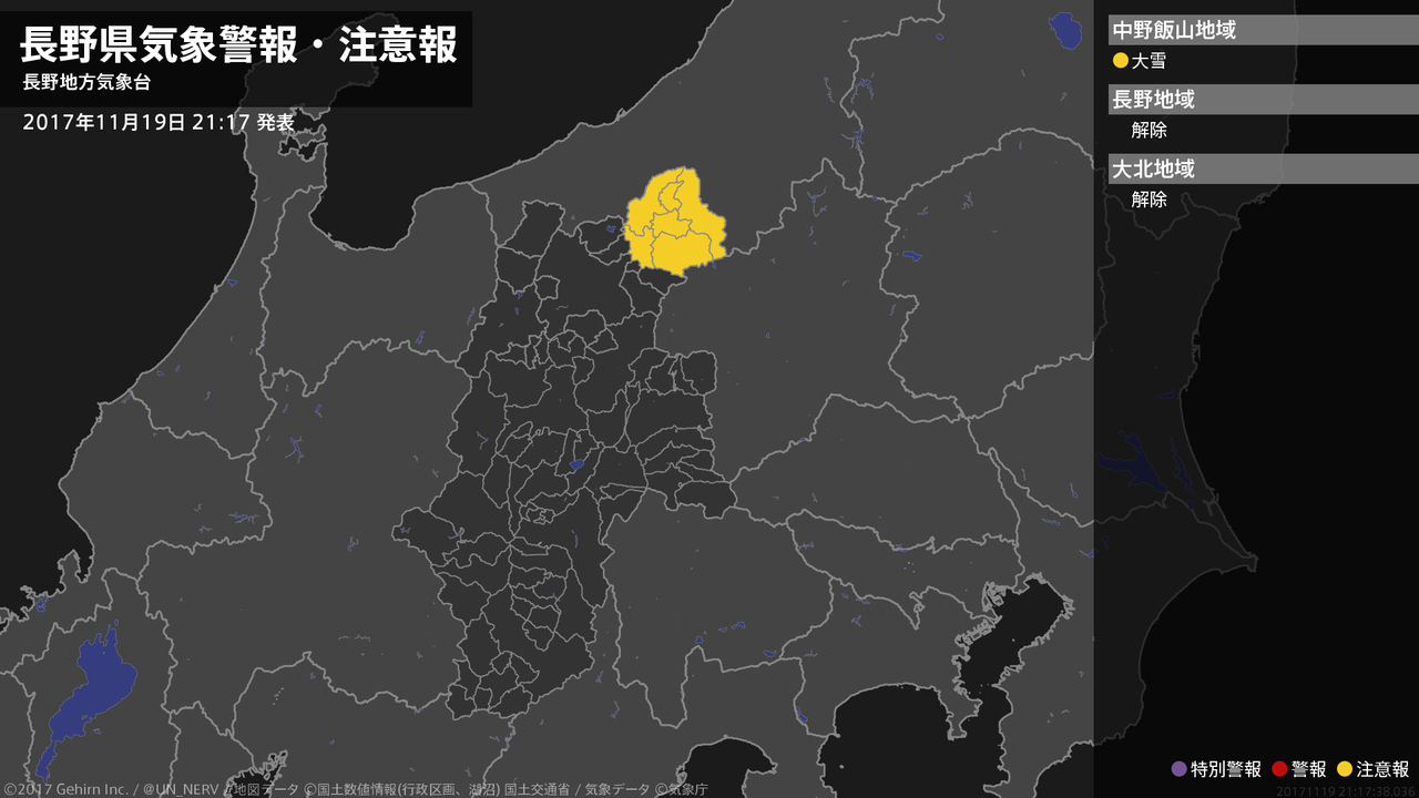 【長野県 気象警報・注意報 2017年11月20日 04:32】注意報を解除します。#気象警報注意報 #長野県