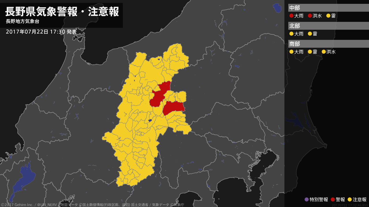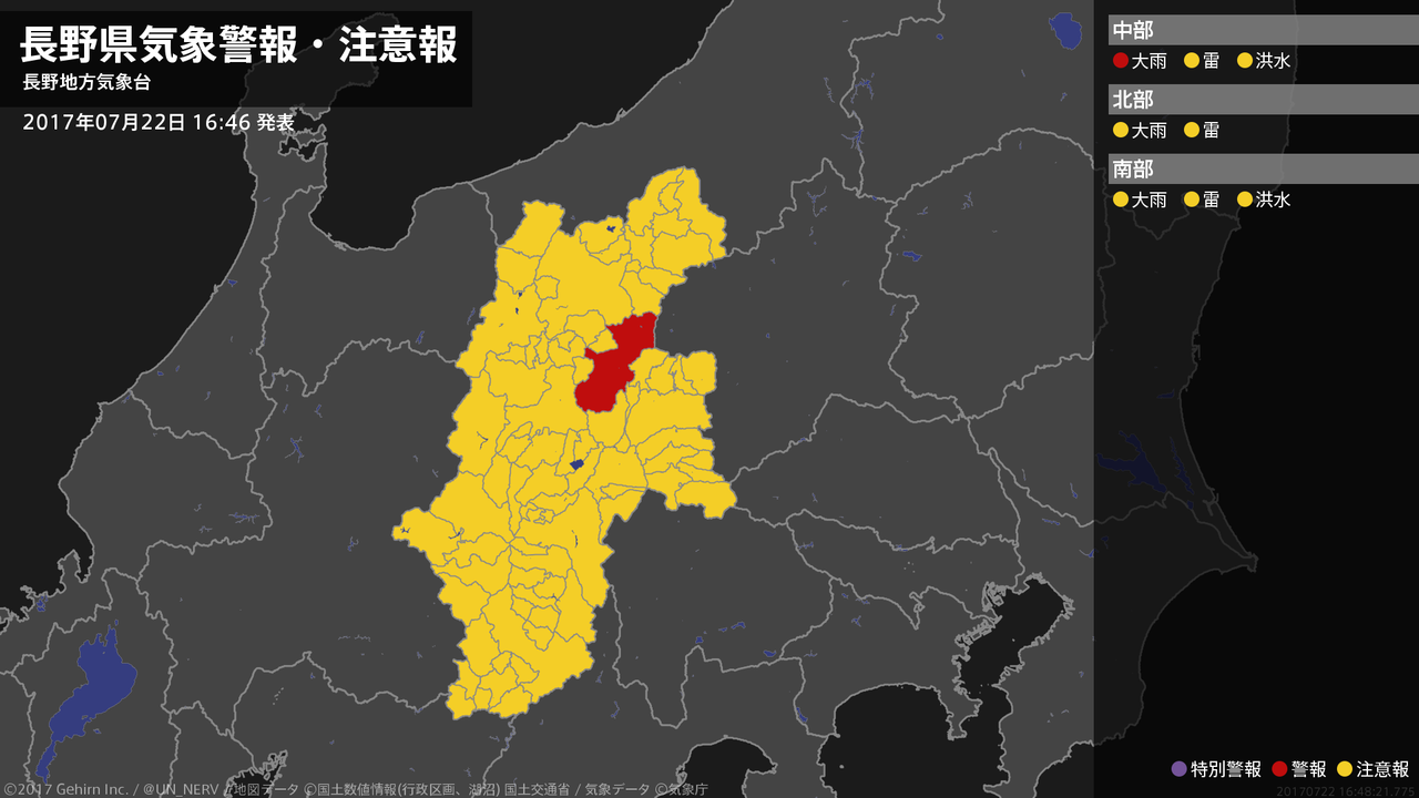 【大雨と雷及び突風に関する全般気象情報 2017年07月22日 16:35】