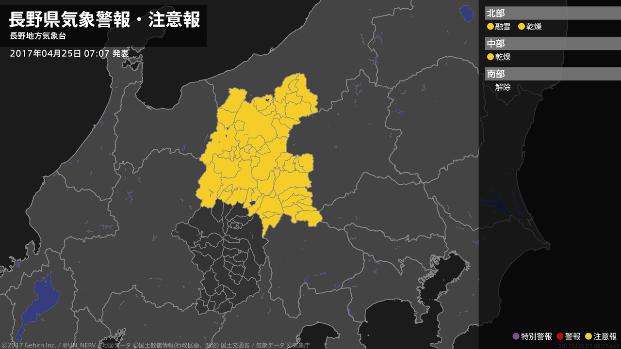 【長野県 気象警報・注意報 2017年04月25日 07:09】