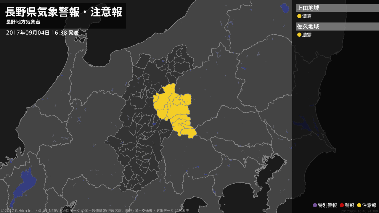 【長野県 気象警報・注意報 2017年09月04日 16:40】