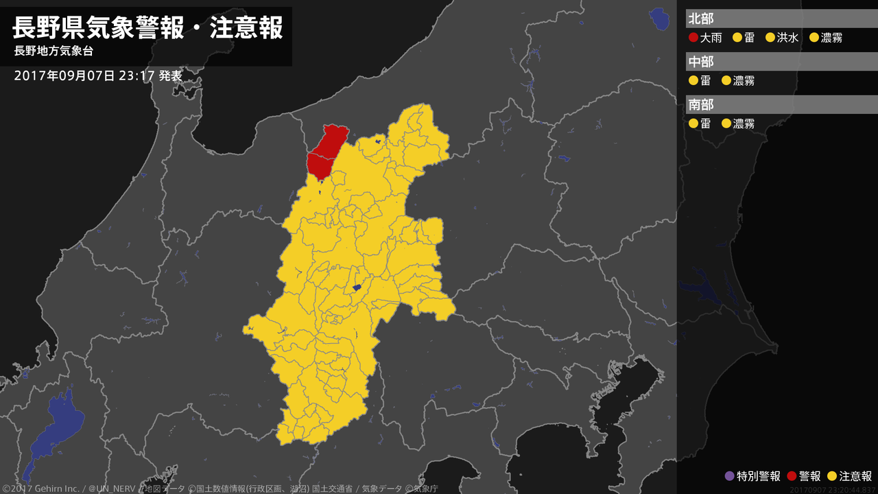 【長野県 気象警報・注意報 2017年09月07日 01:20】