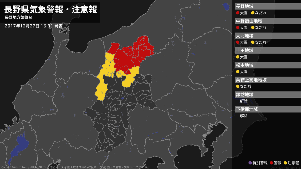 【暴風雪と高波及び大雪に関する全般気象情報 2017年12月27日 16:22】