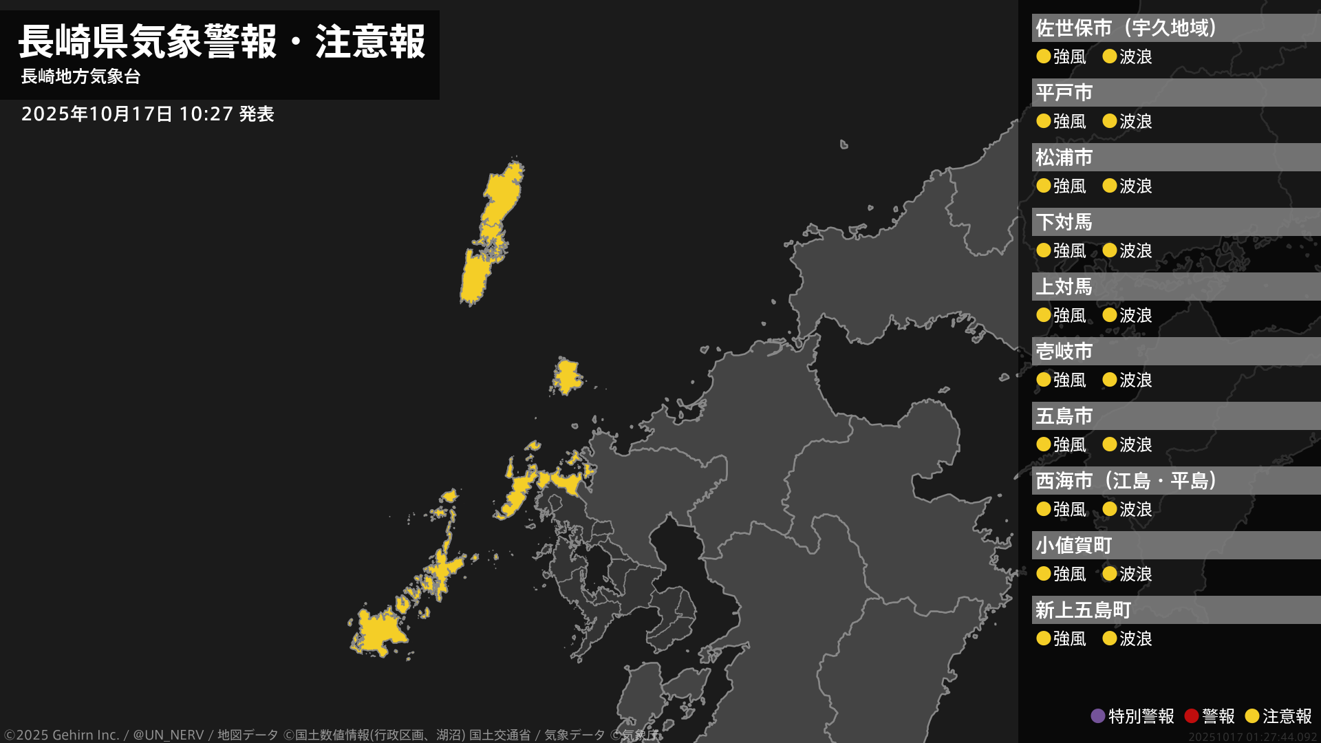 【長崎県 気象警報・注意報 2025年10月17日 04:10】