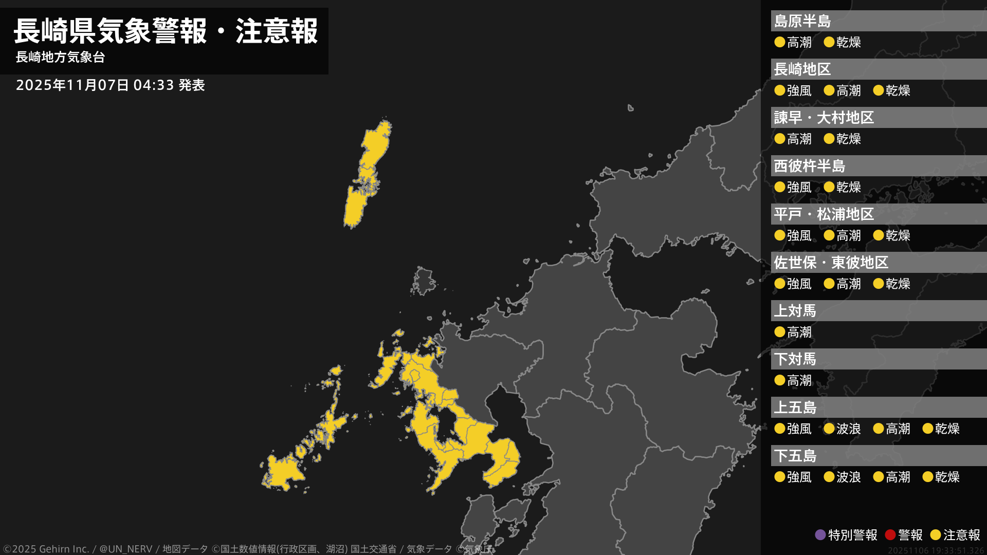 【長崎県 気象警報・注意報 2025年11月07日 04:33】