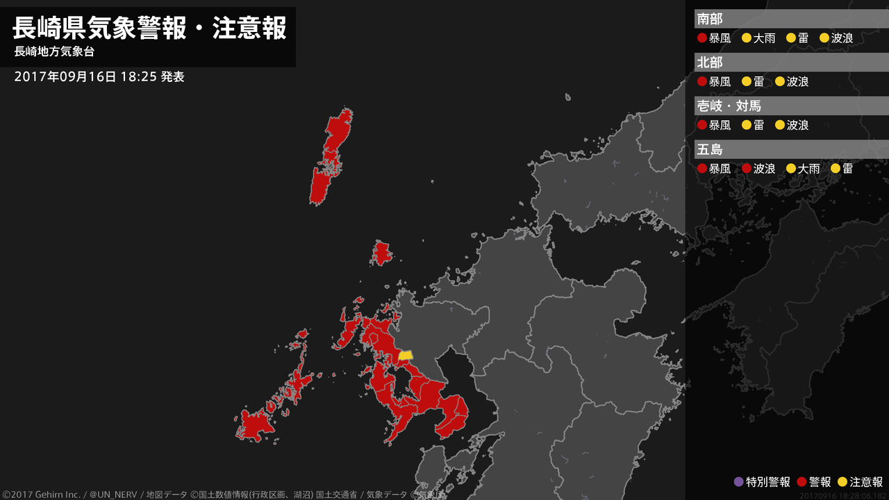 【長崎県 気象警報 2017年09月16日 18:28】