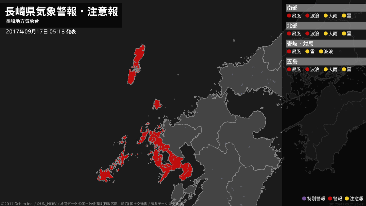 【長崎県 気象警報・注意報 2017年09月17日 05:21】